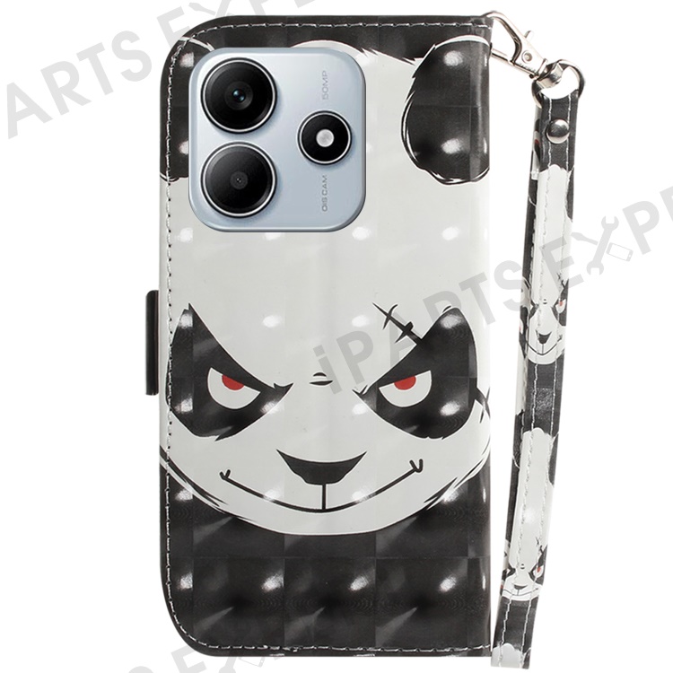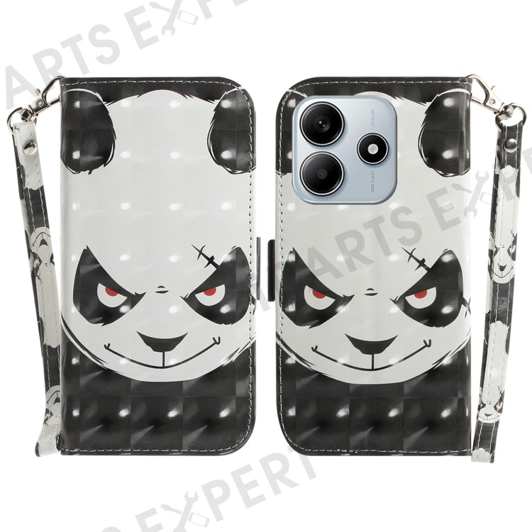 For Xiaomi Redmi Note 14 5G Case Pattern Printing Leather Wallet Phone Cover with Wrist Strap - Angry Panda