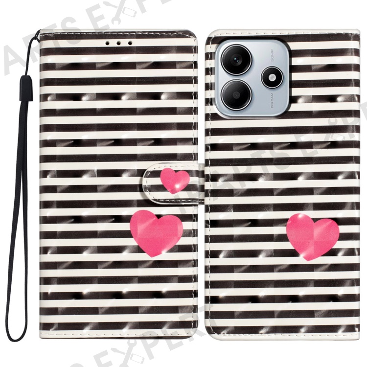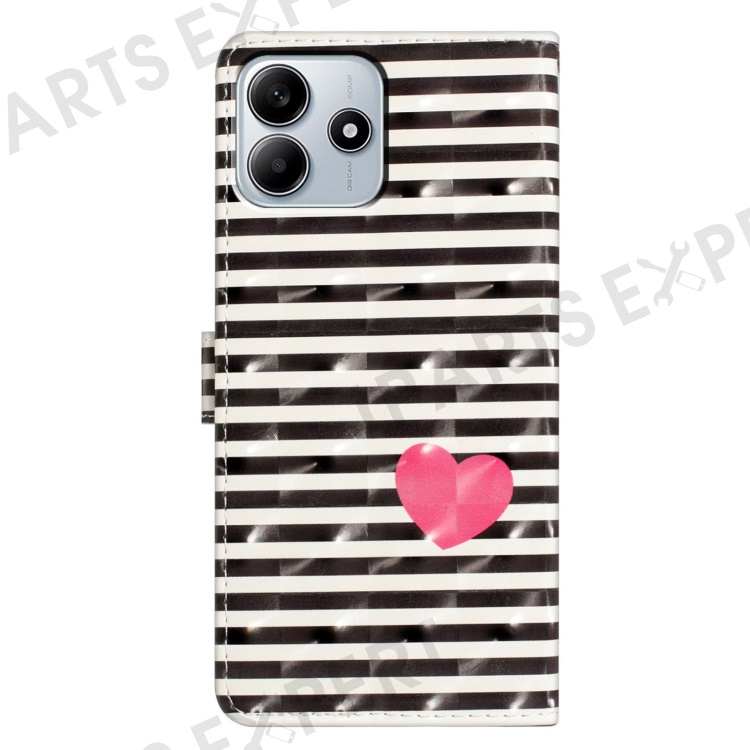 For Xiaomi Redmi Note 14 5G Case PU Leather Wallet Phone Cover 3D Pattern Printing - Stripes / Heart