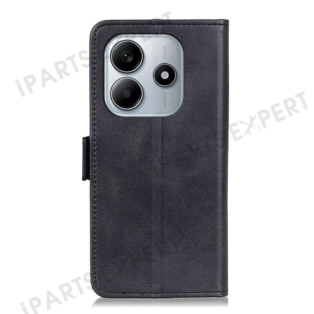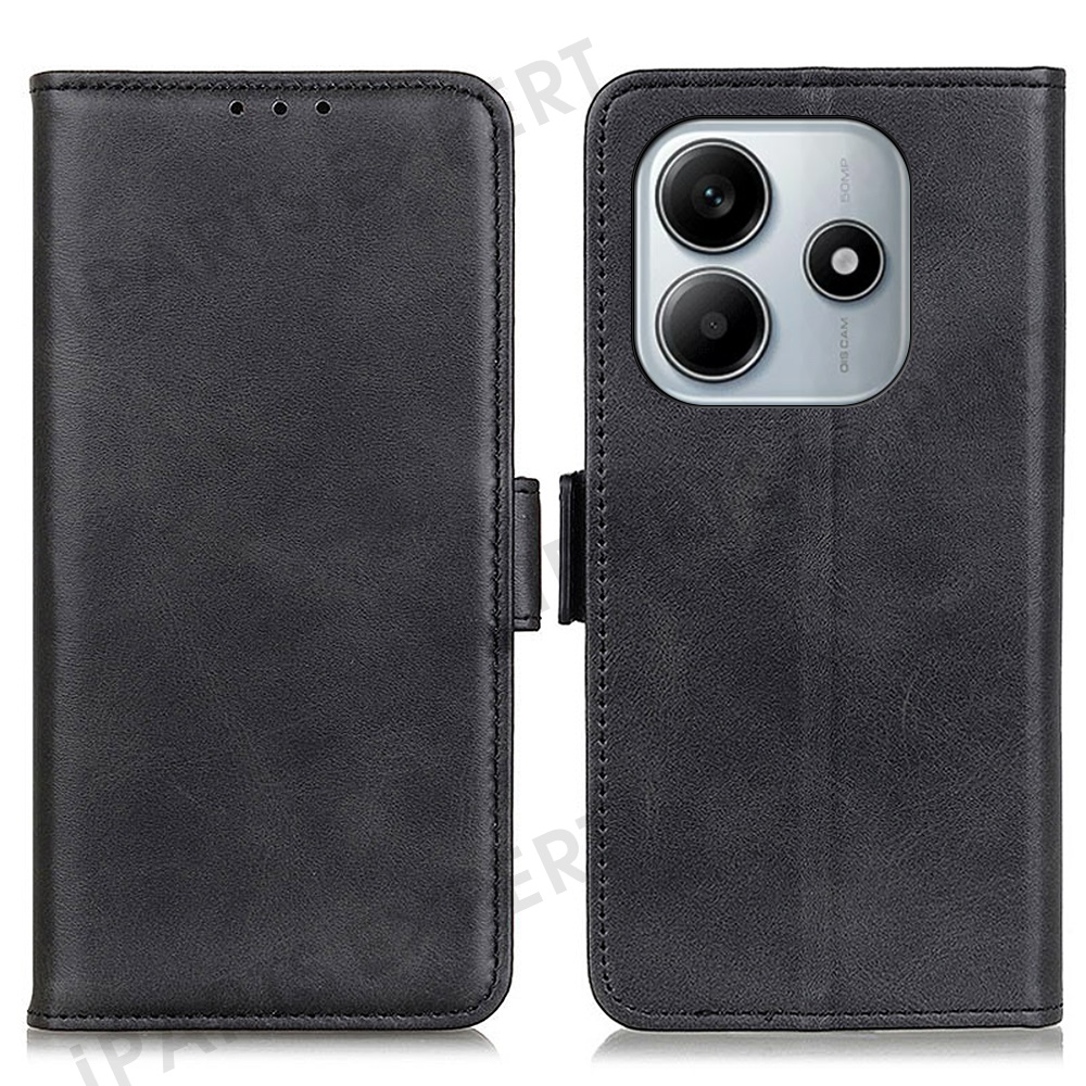 For Xiaomi Redmi Note 14 5G Case Stand Cowhide Texture PU Leather Phone Cover - Black