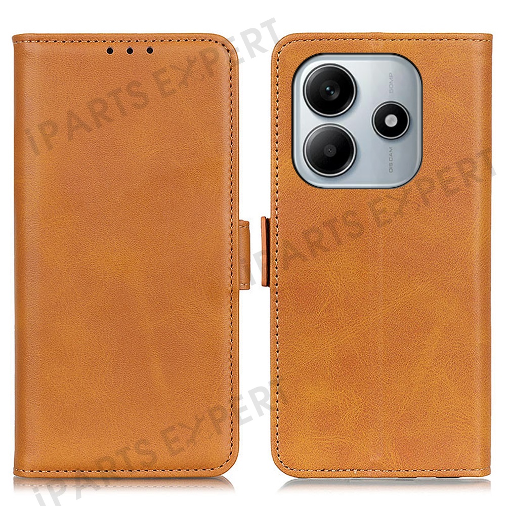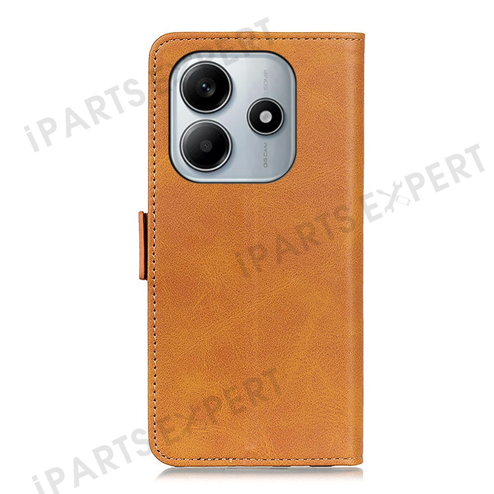 For Xiaomi Redmi Note 14 5G Case Stand Cowhide Texture PU Leather Phone Cover - Yellow