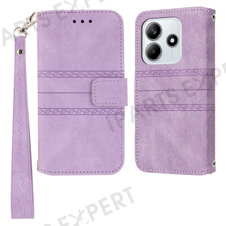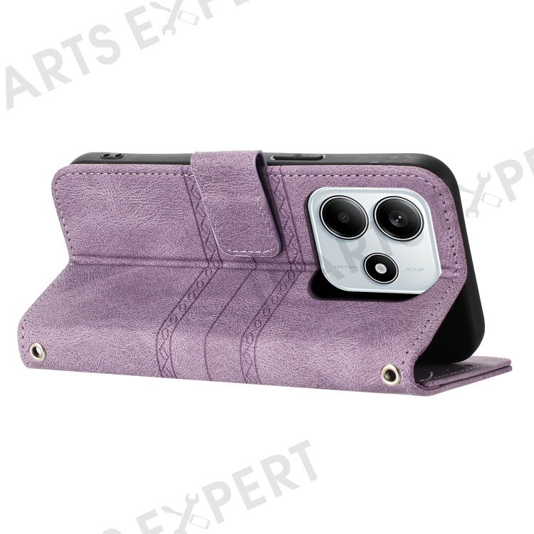 For Xiaomi Redmi Note 14 5G Case Wallet Skin-touch Leather Imprinted Phone Cover - Purple