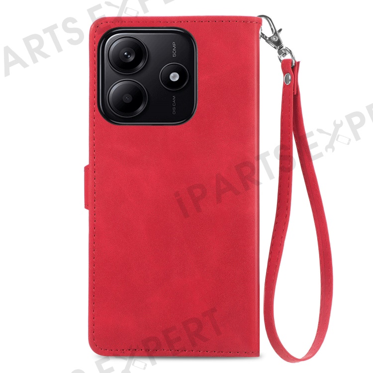 For Xiaomi Redmi Note 14 5G Zipper Wallet Case with Strap Flower Imprint PU Leather Phone Cover - Red