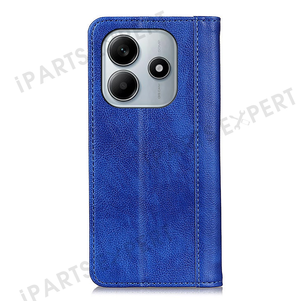 For Xiaomi Redmi Note 14 5G Stand Case Split Leather Litchi Texture Wallet Phone Cover - Blue