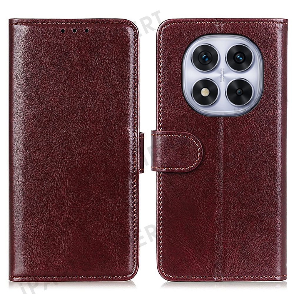 For Xiaomi Redmi Note 14 Pro 4G Case Crazy Horse Texture PU Leather Phone Stand Cover - Brown