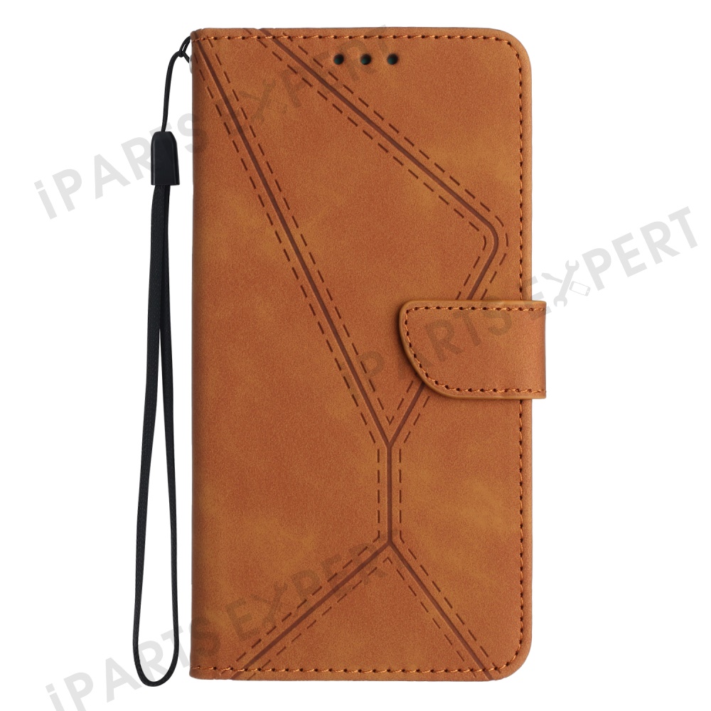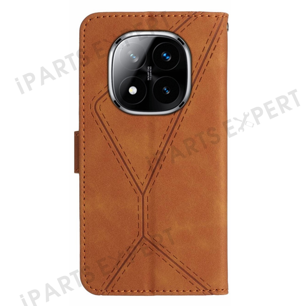 For Xiaomi Redmi Note 14 Pro 4G Case Skin Touch Lines Imprinted PU Leather Flip Phone Cover - Brown