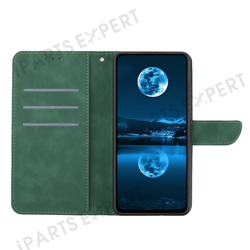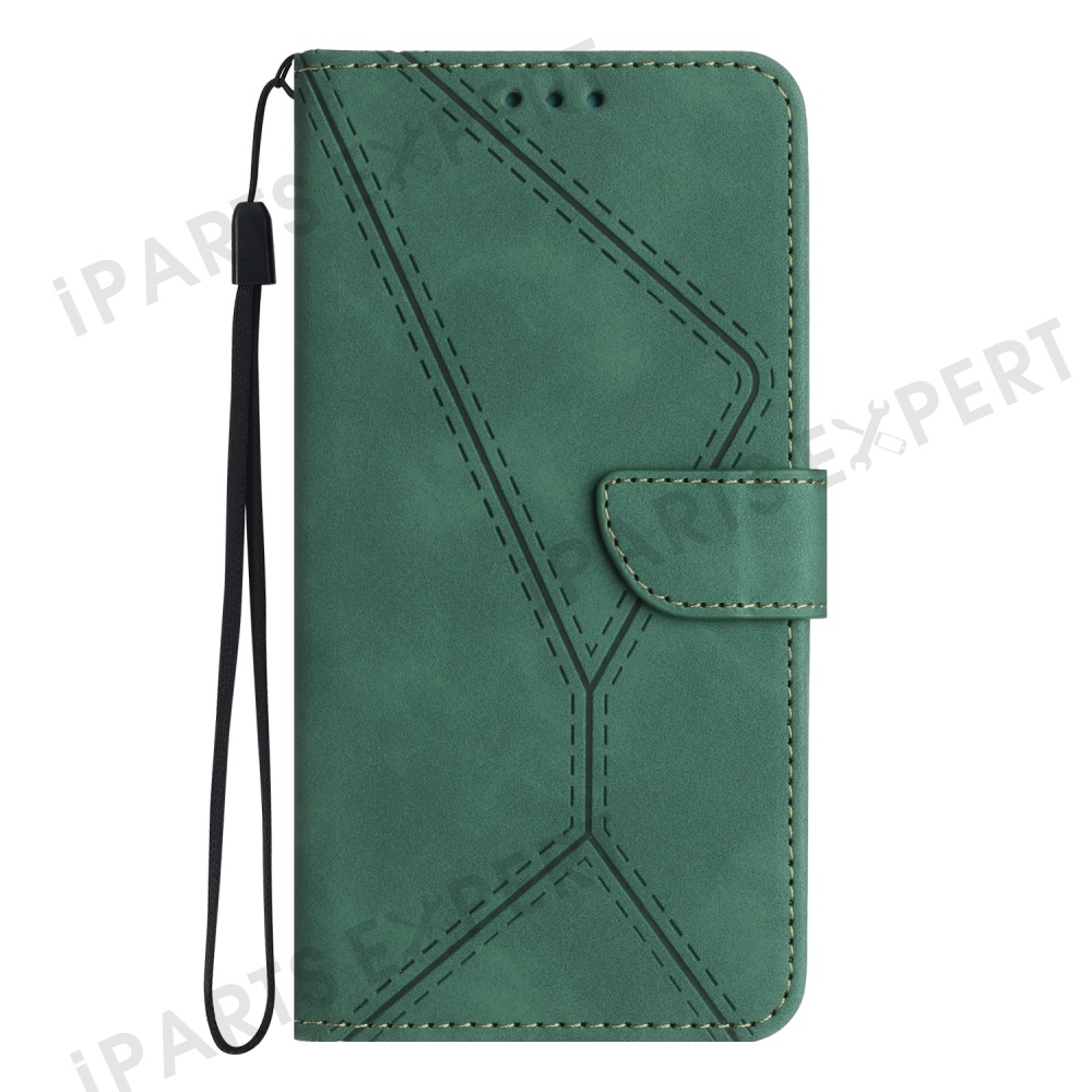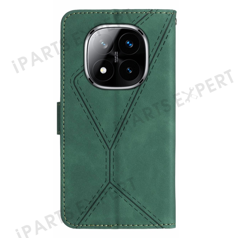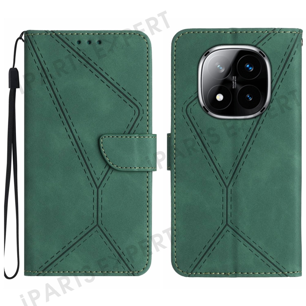 For Xiaomi Redmi Note 14 Pro 4G Case Skin Touch Lines Imprinted PU Leather Flip Phone Cover - Green