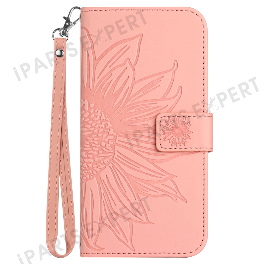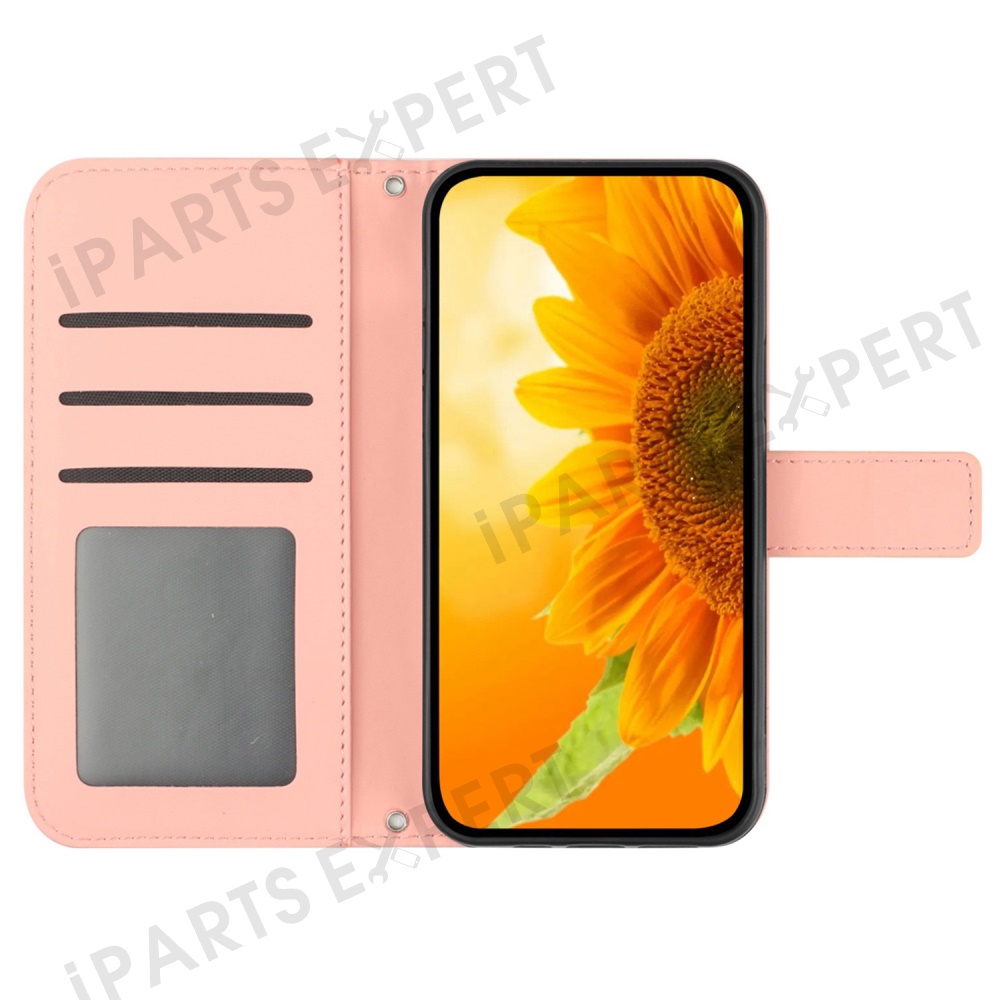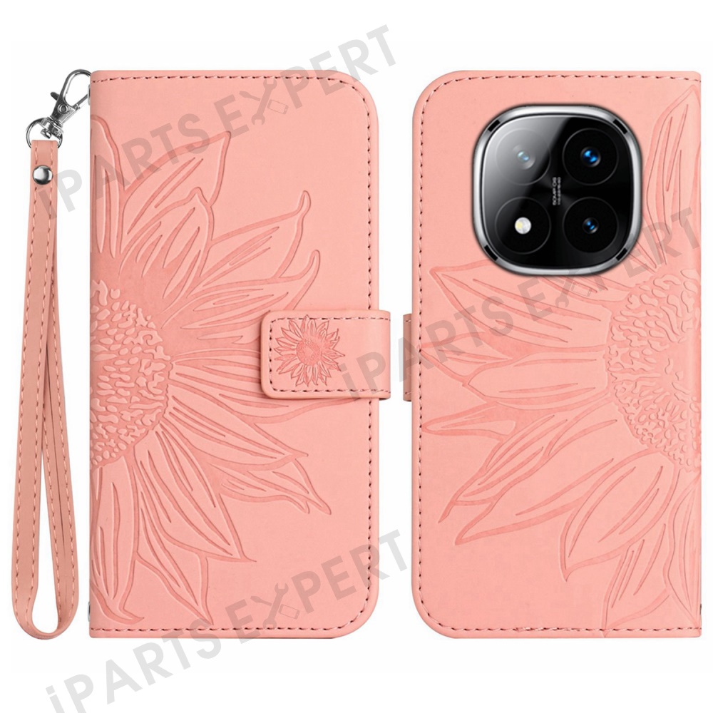 For Xiaomi Redmi Note 14 Pro 4G Case Sunflower Imprint Leather Wallet Phone Cover with Wrist Strap - Light Pink