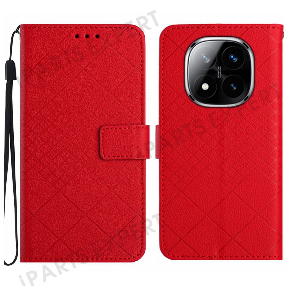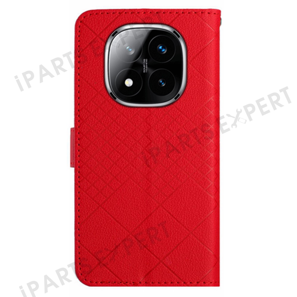 For Xiaomi Redmi Note 14 Pro 4G Wallet Phone Case Imprint PU Leather Flip Folio Cover - Red
