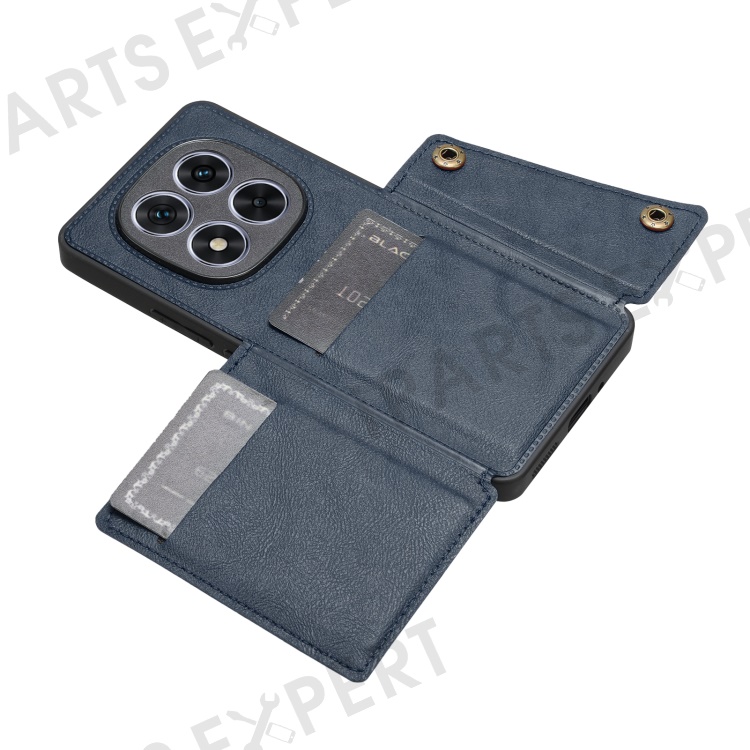 For Xiaomi Redmi Note 14 Pro+ 5G Case Card Slots Kickstand Leather + TPU Phone Cover - Blue
