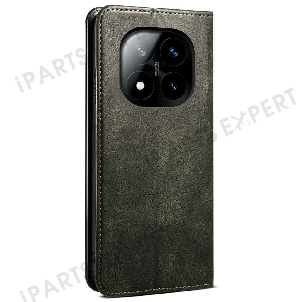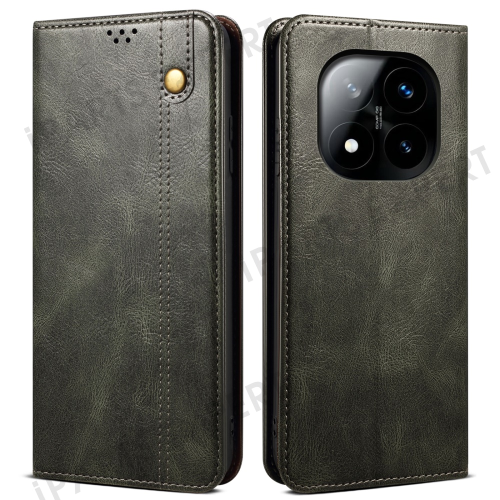 For Xiaomi Redmi Note 14 Pro+ 5G Case Crazy Horse Texture Waxy Leather Wallet Stand Phone Cover - Green