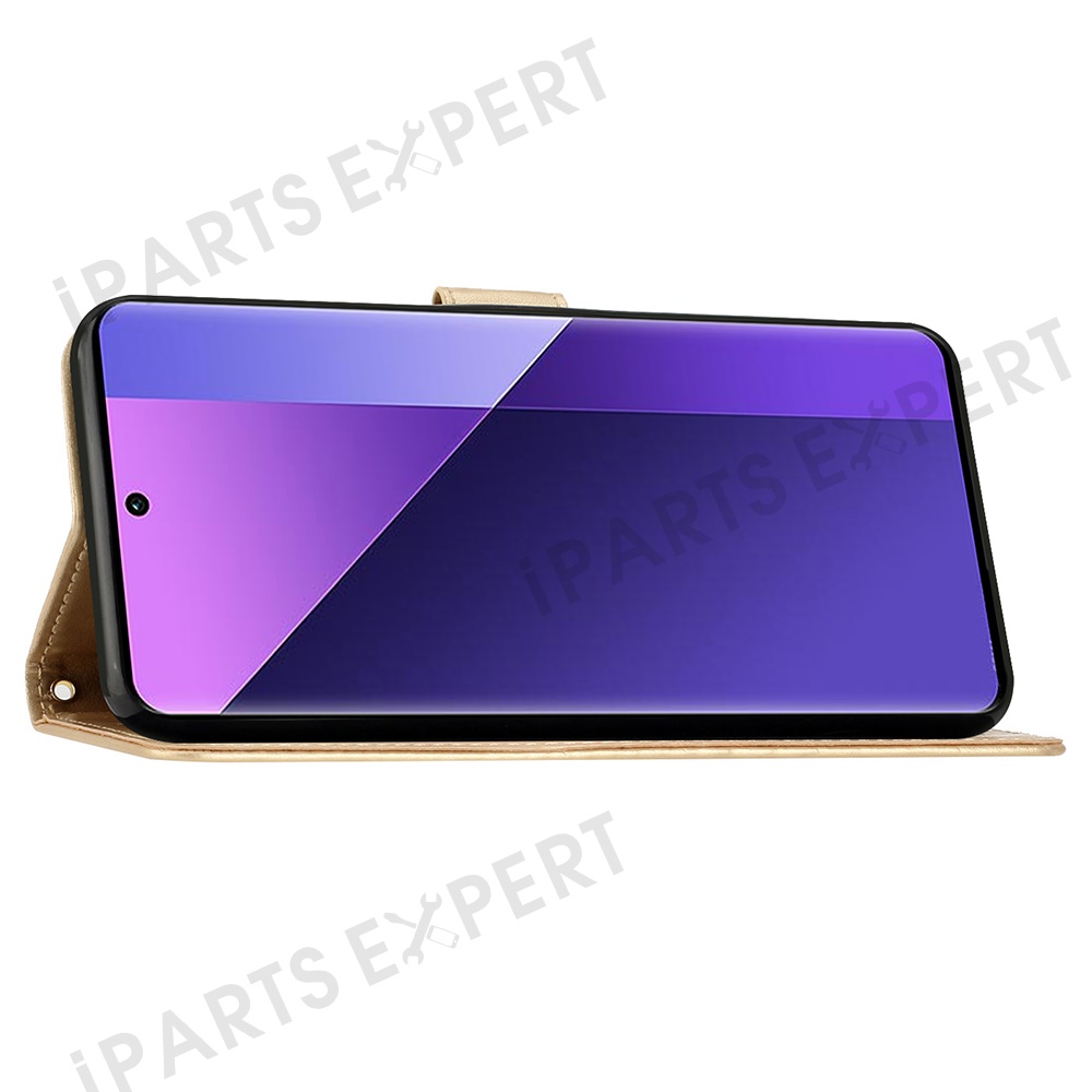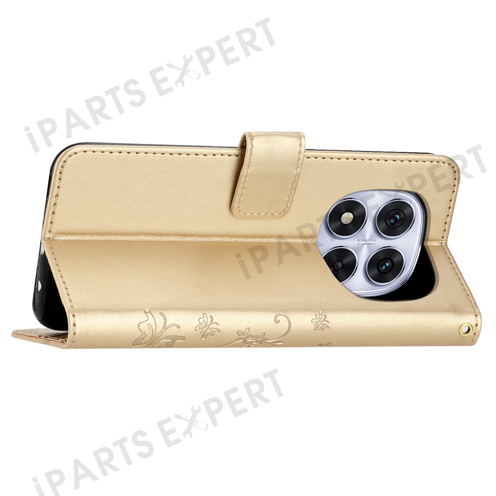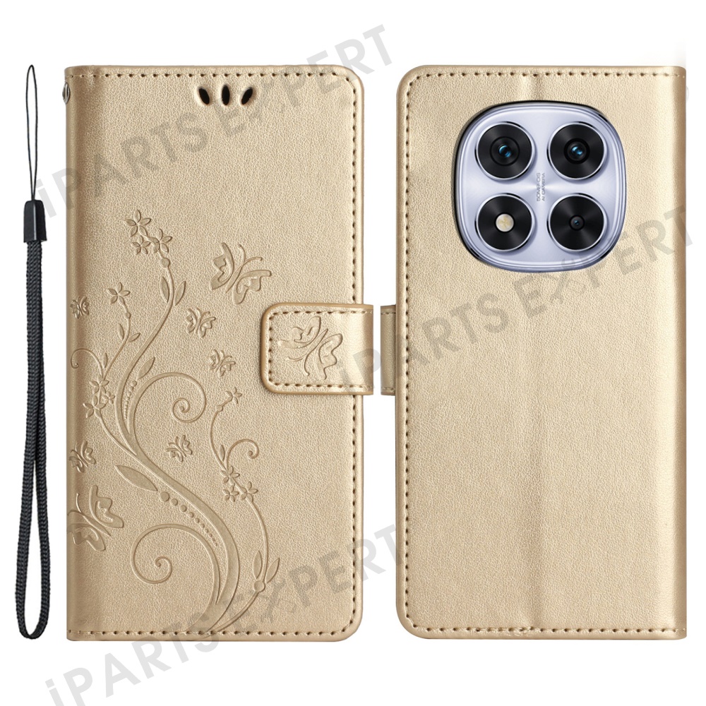 For Xiaomi Redmi Note 14 Pro+ 5G Case PU Leather Phone Wallet Cover with Strap - Gold