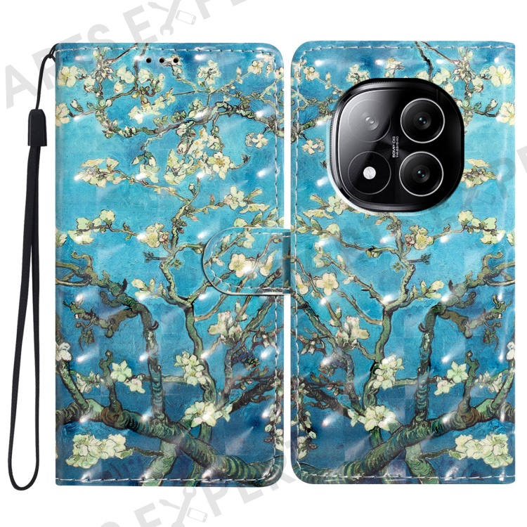 For Xiaomi Redmi Note 14 Pro+ 5G Case PU Leather Wallet Phone Cover 3D Pattern Printing - Apricot Blossom