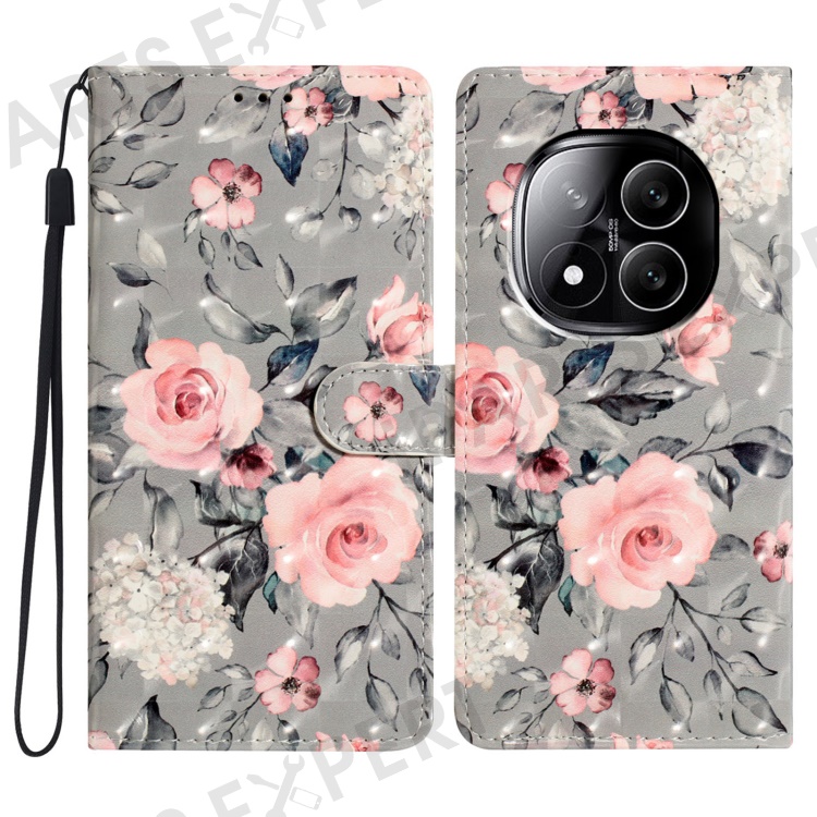 For Xiaomi Redmi Note 14 Pro 5G / Poco X7 5G Case PU Leather Wallet Phone Cover 3D Pattern Printing - Flowers