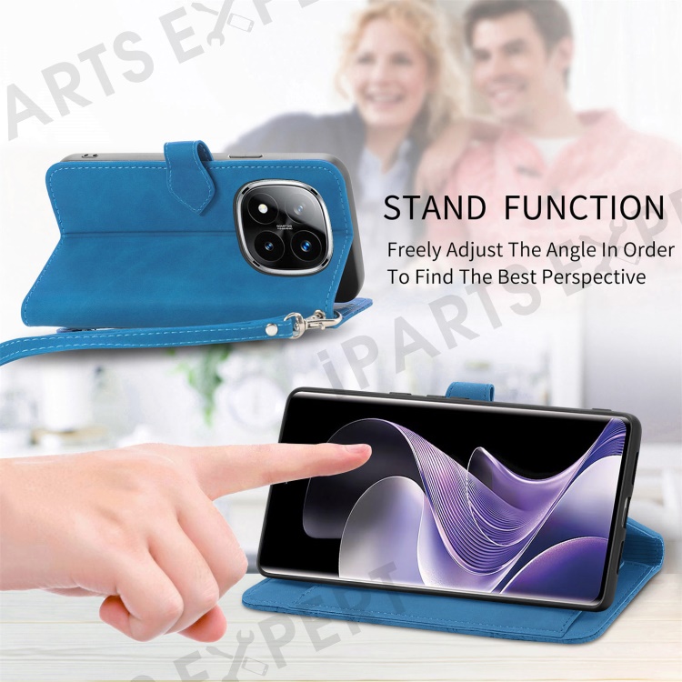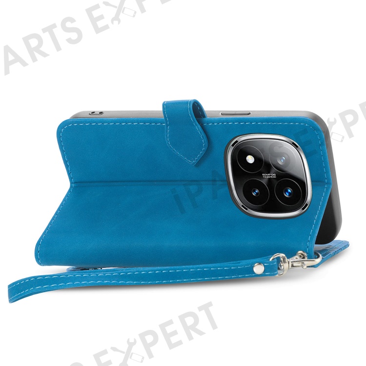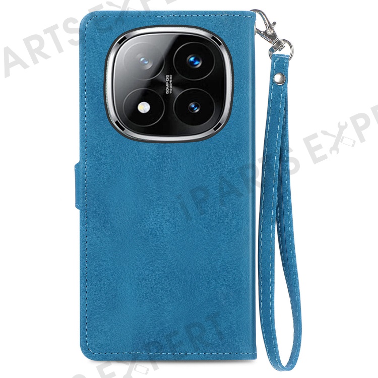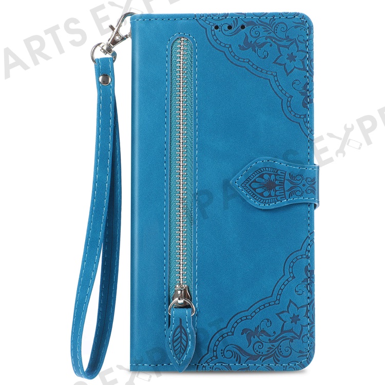 For Xiaomi Redmi Note 14 Pro+ 5G Zipper Wallet Case with Strap Flower Imprint PU Leather Phone Cover - Blue