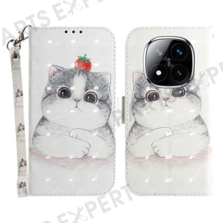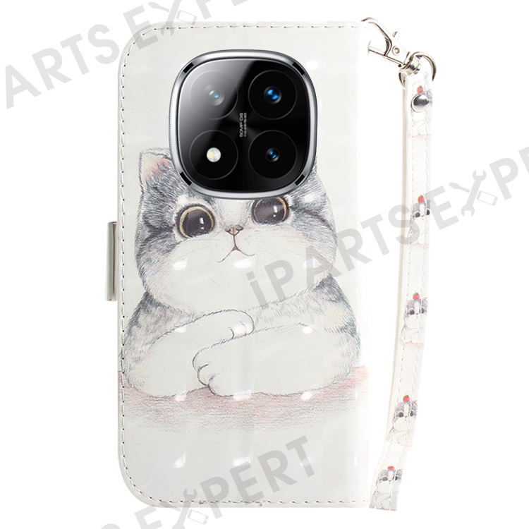 For Xiaomi Redmi Note 14 Pro 5G / Poco X7 5G Case Pattern Printing Leather Wallet Phone Cover with Wrist Strap - Cute Cat