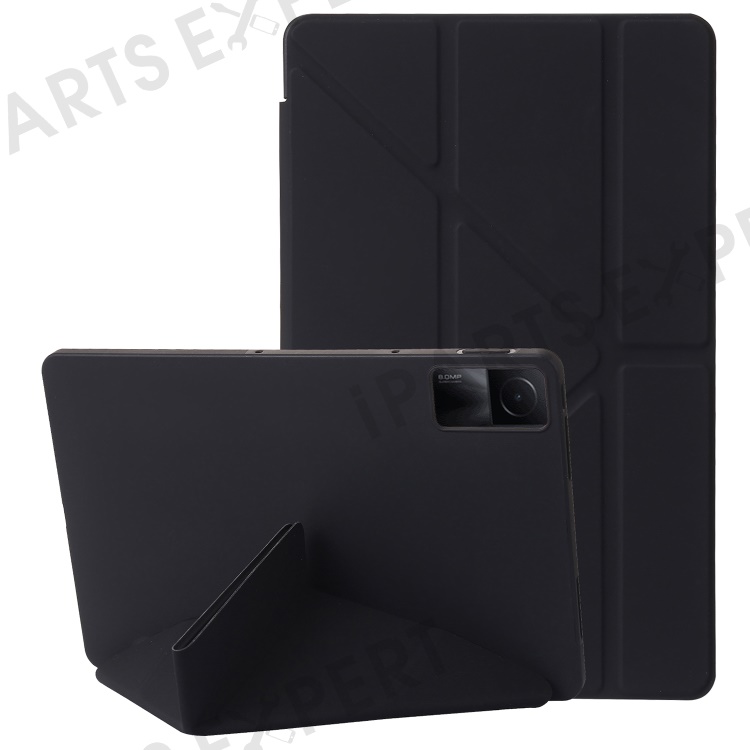 For Xiaomi Redmi Pad SE Case PU Leather+Silicone Stand Shockproof Tablet Cover - Black