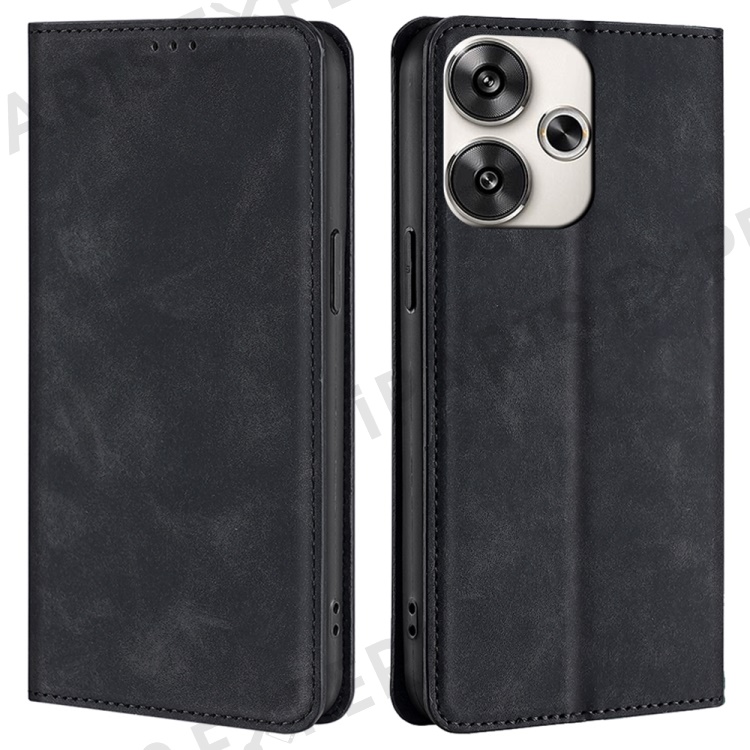 For Xiaomi Redmi Turbo 3 5G / Poco F6 5G Case PU Leather Stand Hidden Magnetic Phone Cover - Black