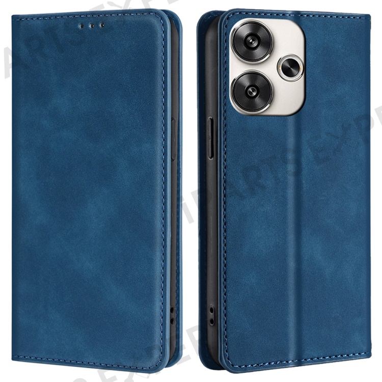 For Xiaomi Redmi Turbo 3 5G / Poco F6 5G Case PU Leather Stand Hidden Magnetic Phone Cover - Blue