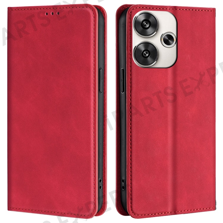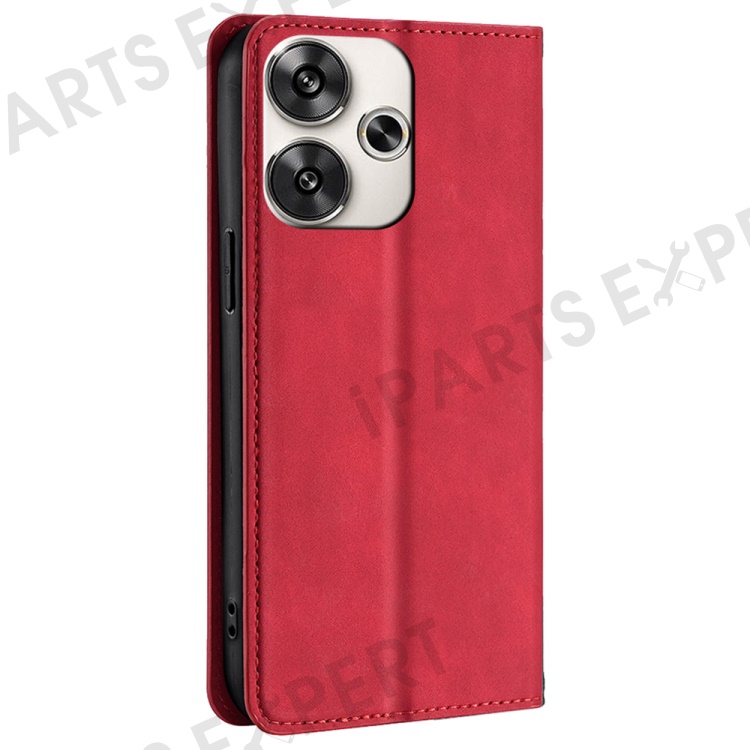 For Xiaomi Redmi Turbo 3 5G / Poco F6 5G Case PU Leather Stand Hidden Magnetic Phone Cover - Red