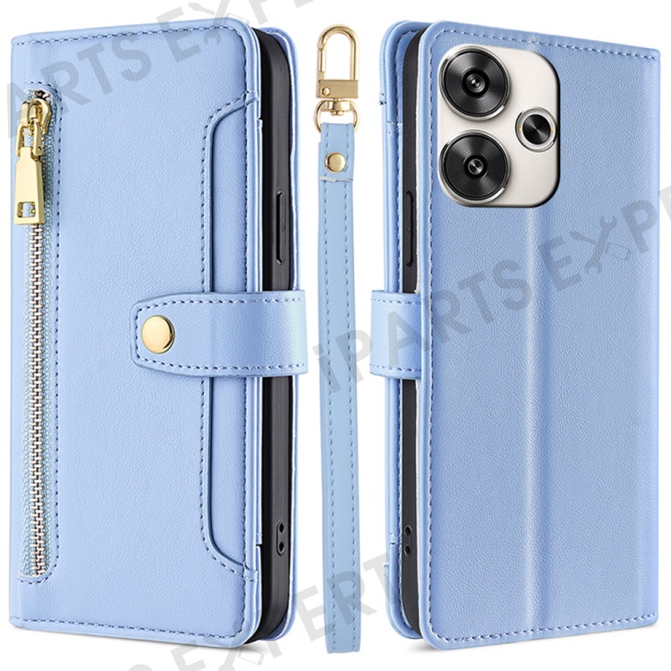 For Xiaomi Redmi Turbo 3 5G / Poco F6 5G Case PU Leather Zipper Flip Phone Cover with 6 Card Slots - Blue