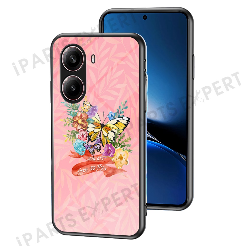 For Xiaomi Redmi Turbo 4 5G Case Butterfly Pattern TPU + Tempered Glass Protective Phone Cover - Flower Bush Butterfly