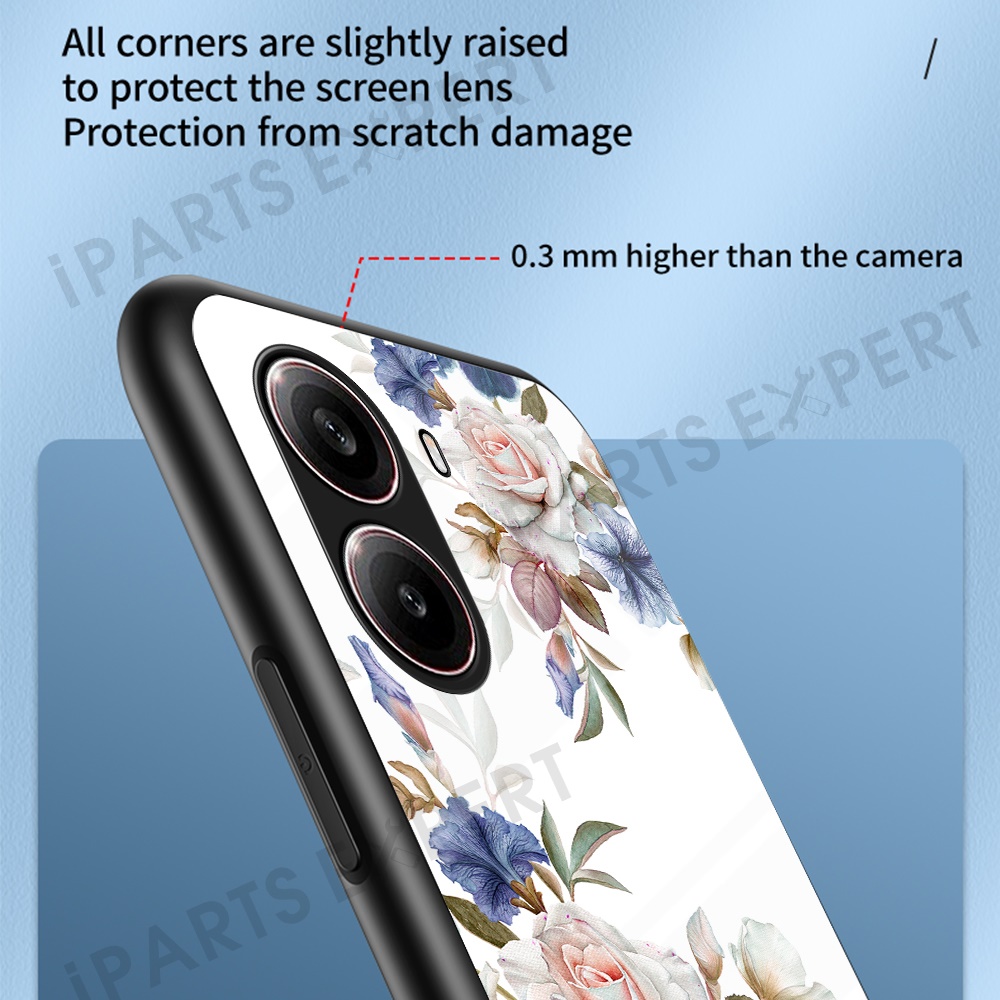 For Xiaomi Redmi Turbo 4 5G Case Floral Pattern TPU + Tempered Glass Protective Phone Cover - Chinese Rose