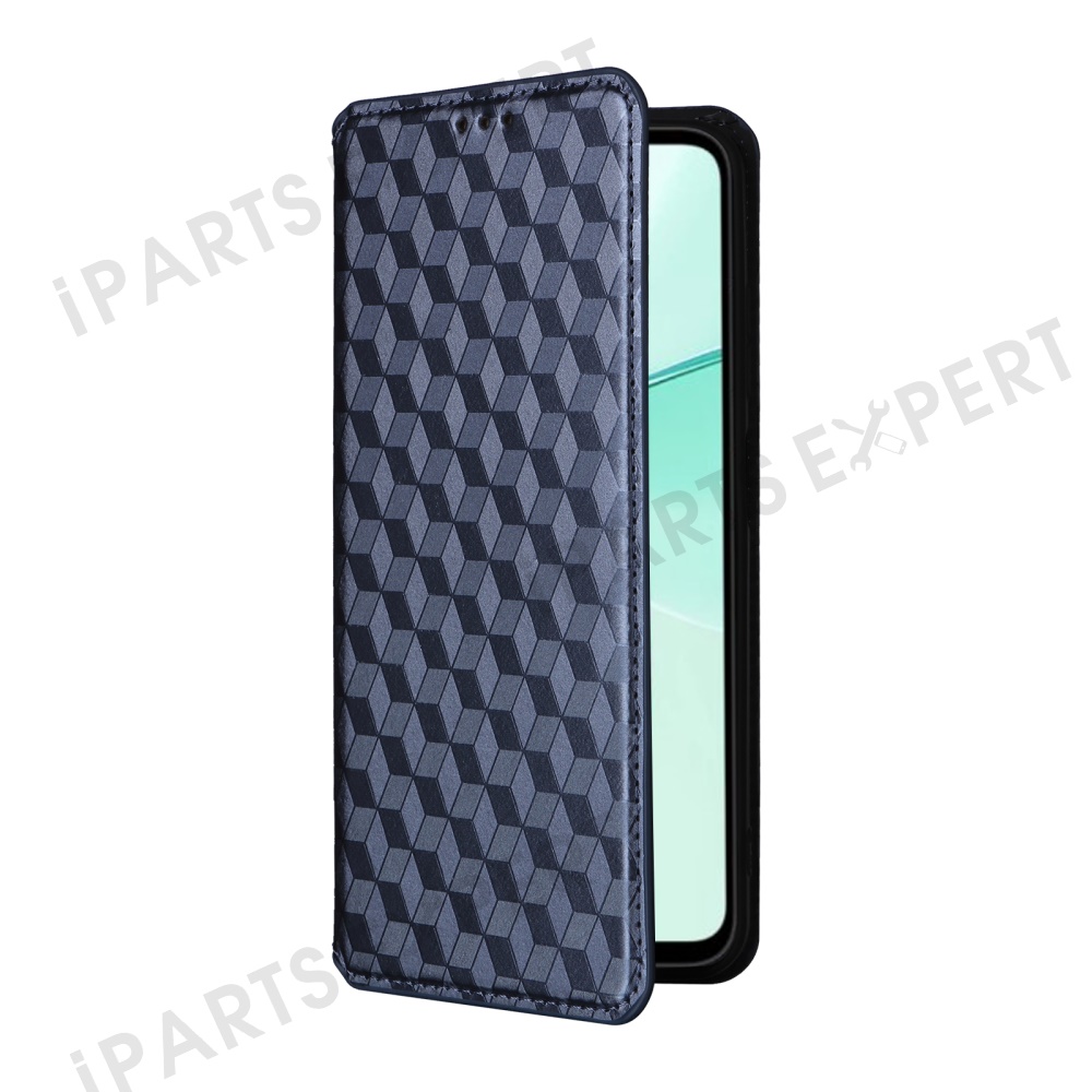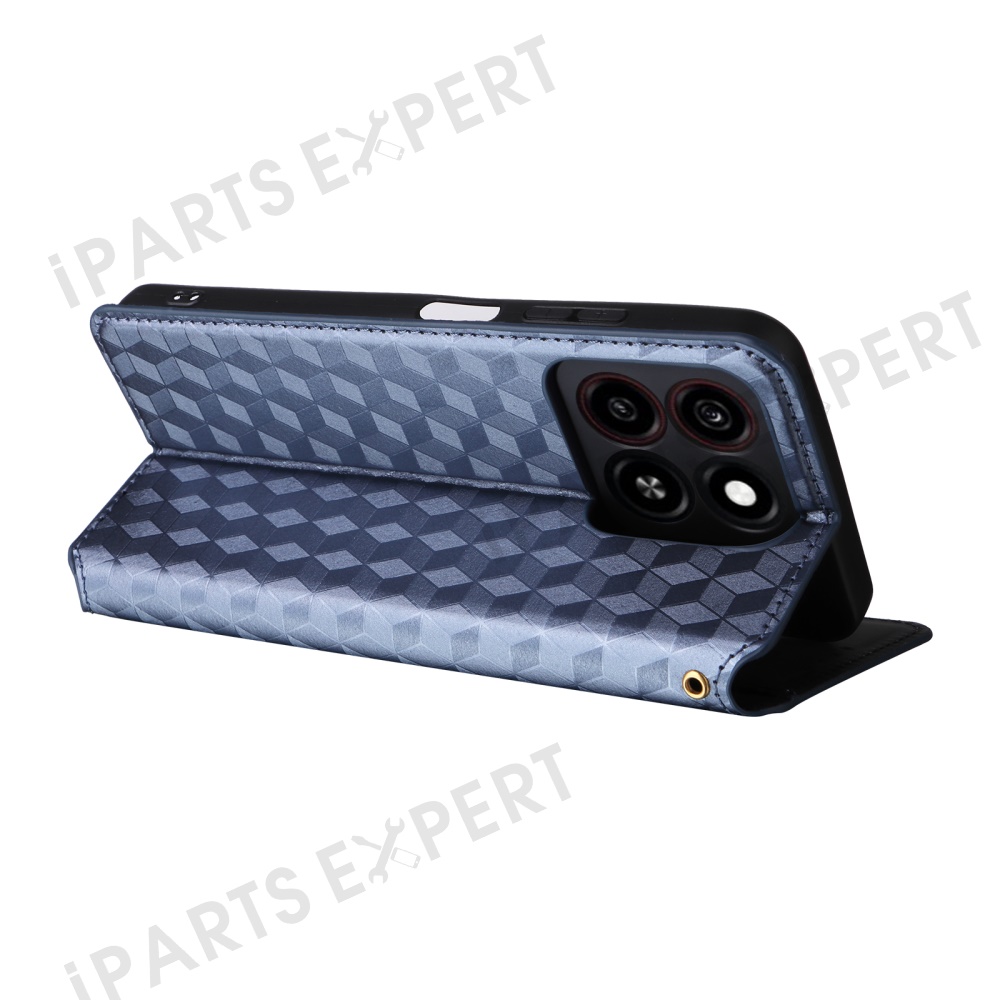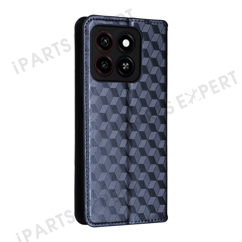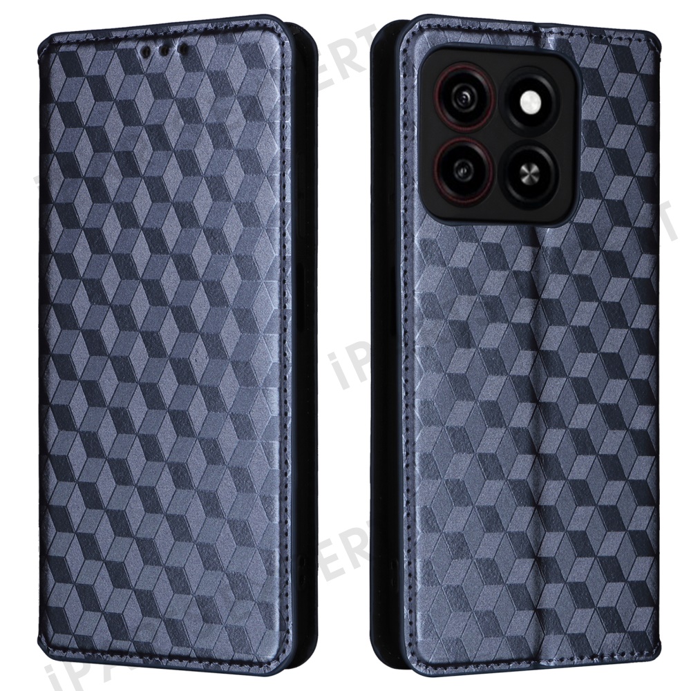 For ZTE Blade A35 / Blade A55 Wallet Case Rhombus Imprinted Leather Phone Cover - Blue