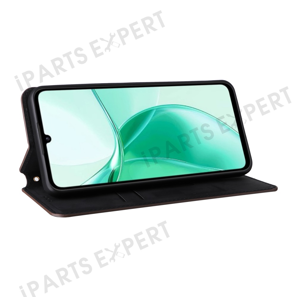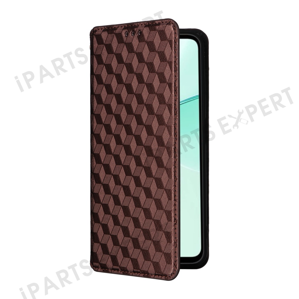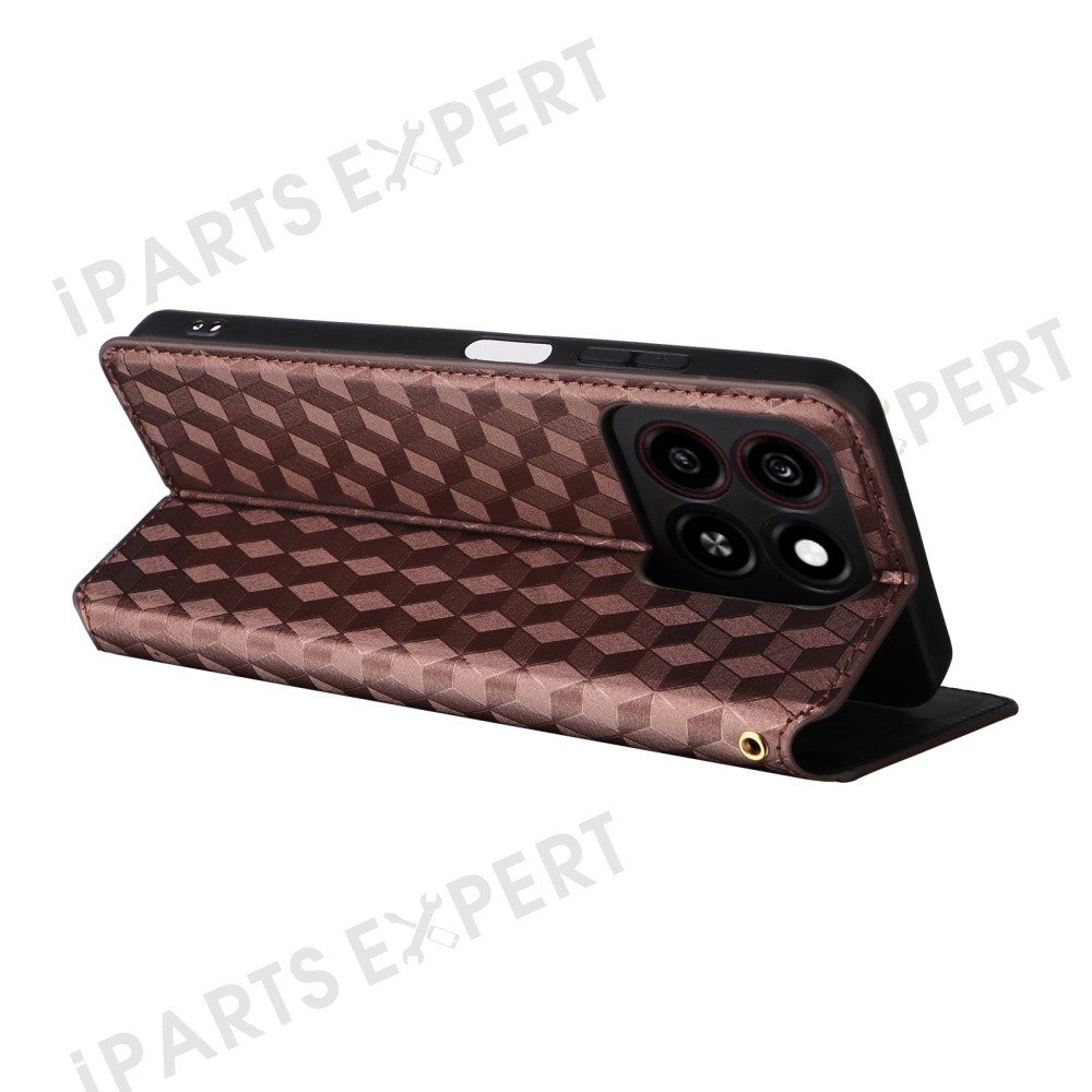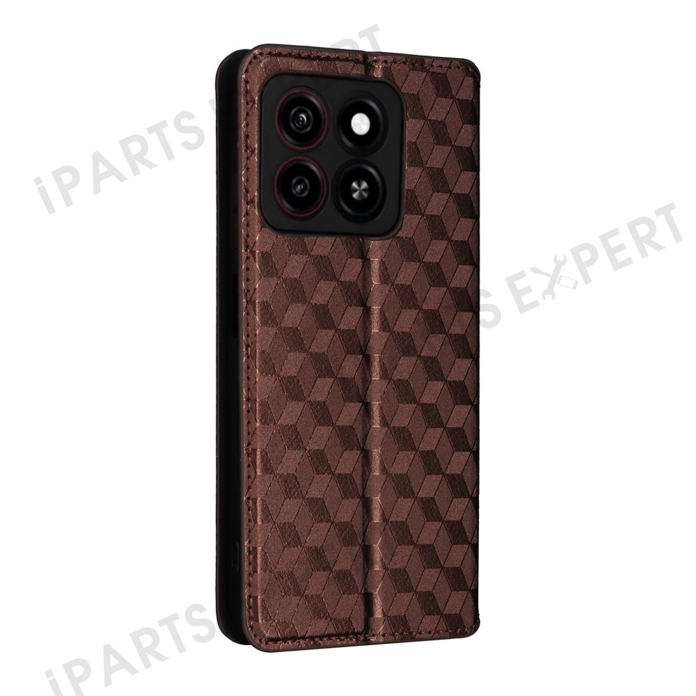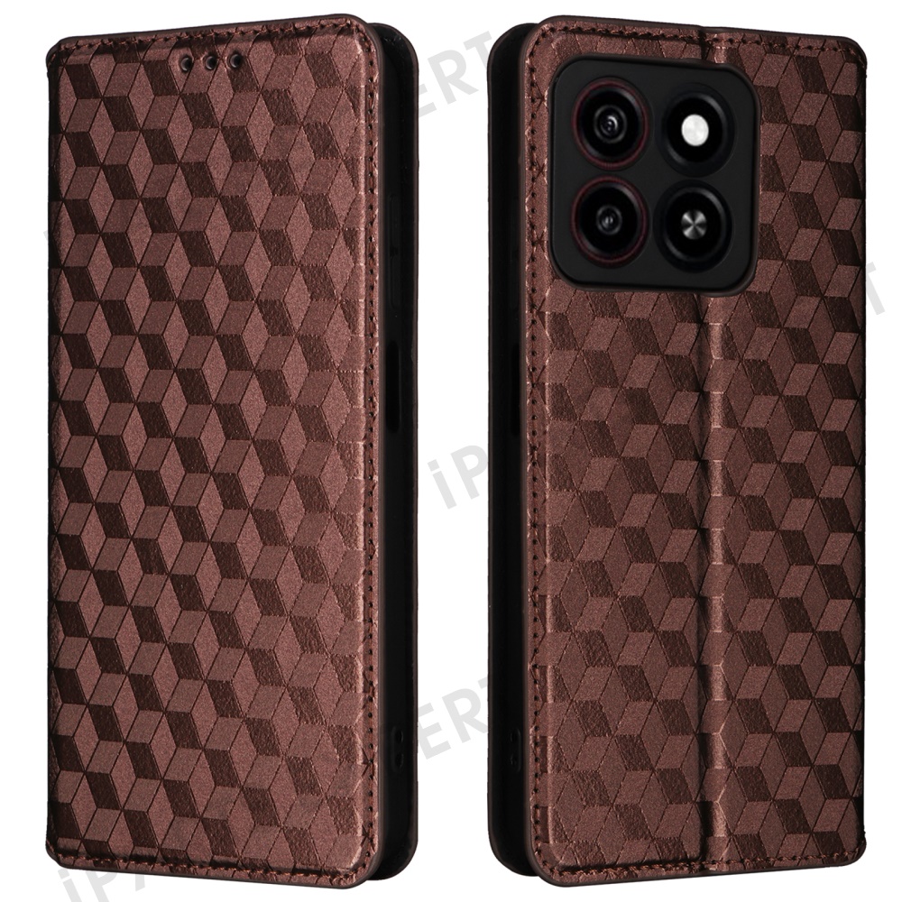 For ZTE Blade A35 / Blade A55 Wallet Case Rhombus Imprinted Leather Phone Cover - Brown