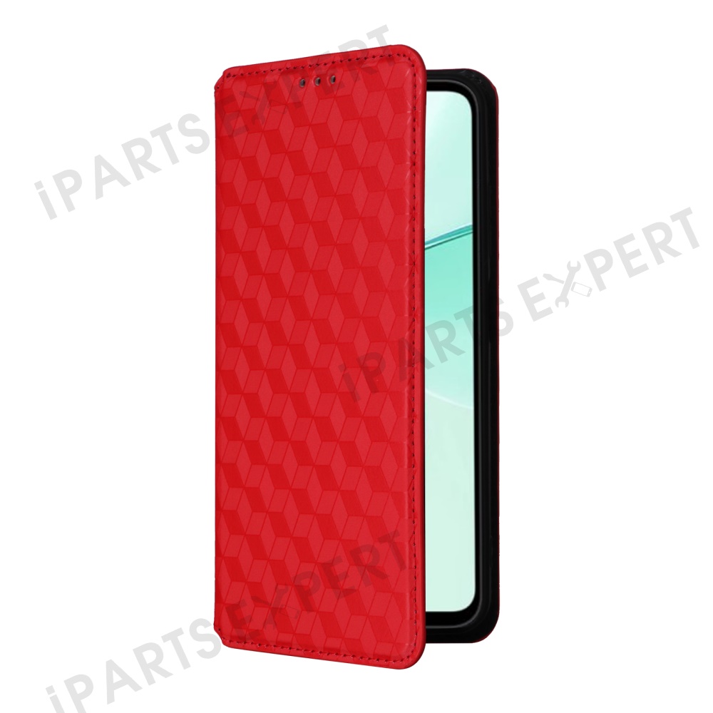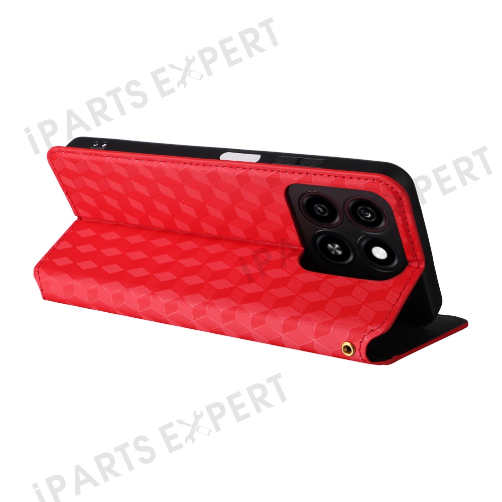 For ZTE Blade A35 / Blade A55 Wallet Case Rhombus Imprinted Leather Phone Cover - Red
