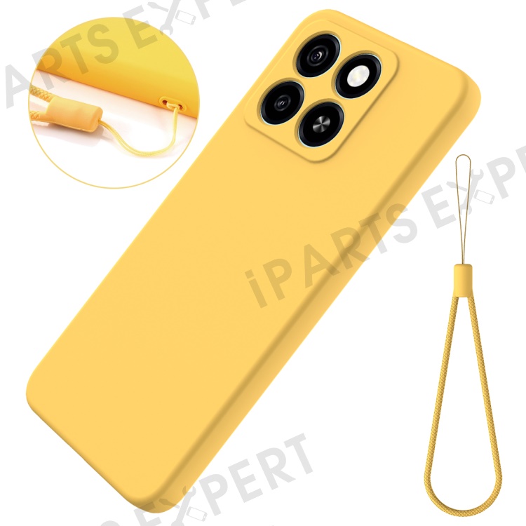 For ZTE Blade A55 / A35 Case Liquid Silicone Anti-Scratch Phone Cover with Hand Strap - Yellow