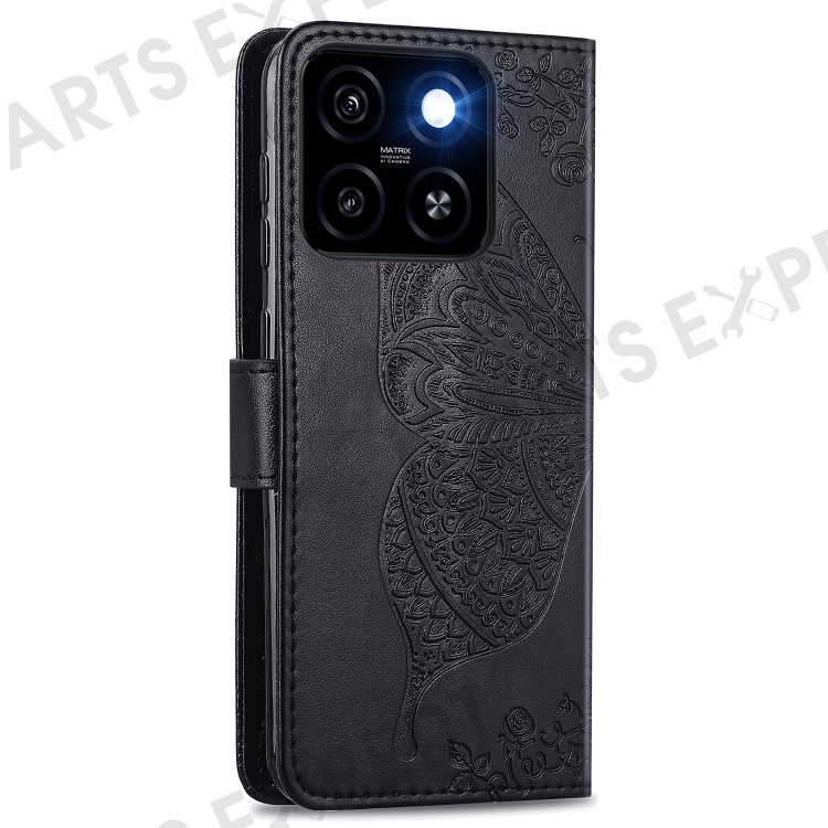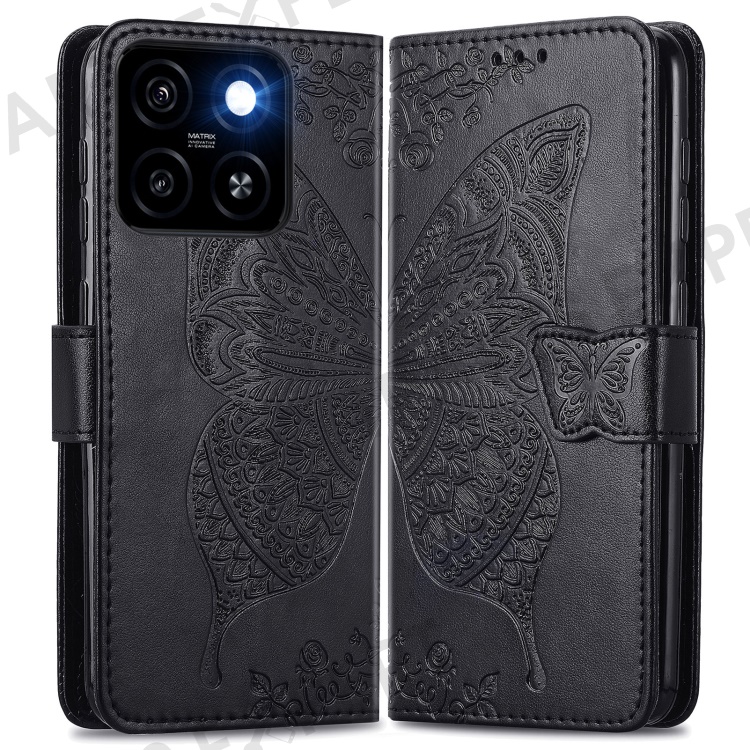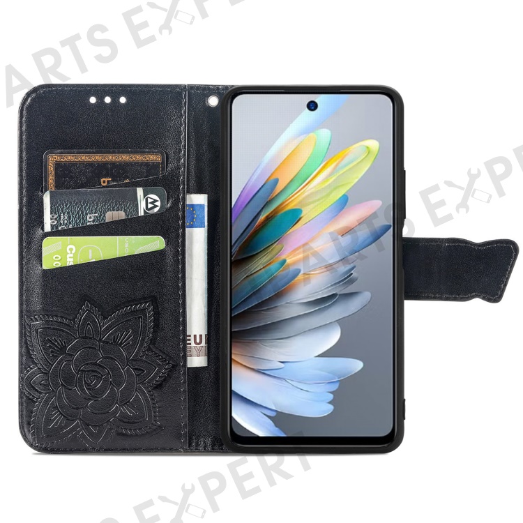 For ZTE Blade A55 Case PU Leather Wallet Phone Cover Butterfly Pattern - Black