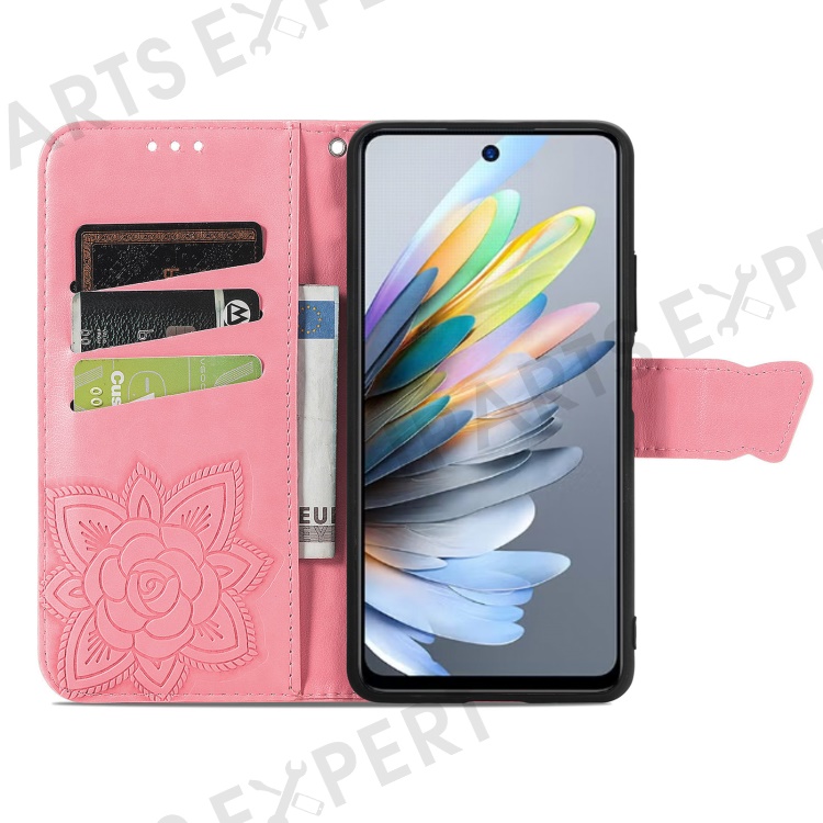 For ZTE Blade A55 Case PU Leather Wallet Phone Cover Butterfly Pattern - Pink