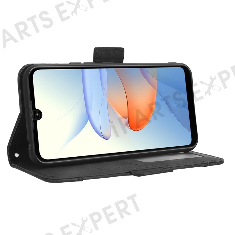 For ZTE Blade L220 Multiple Card Slots PU Leather Case Phone Wallet Stand Dustproof Cover - Black