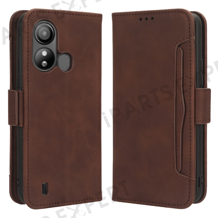 For ZTE Blade L220 Multiple Card Slots PU Leather Case Phone Wallet Stand Dustproof Cover - Brown