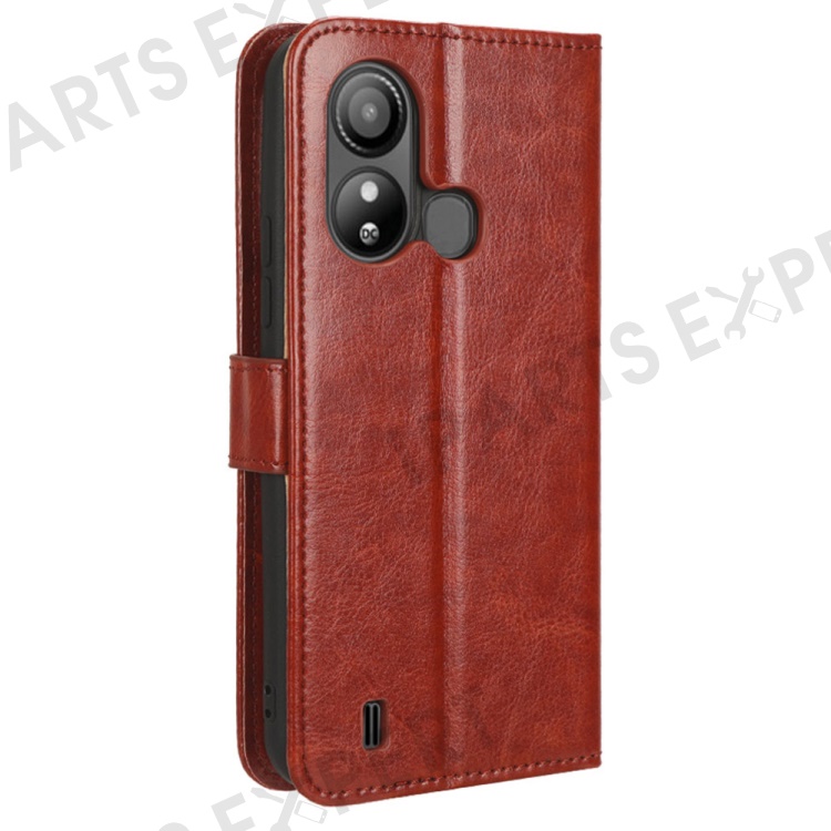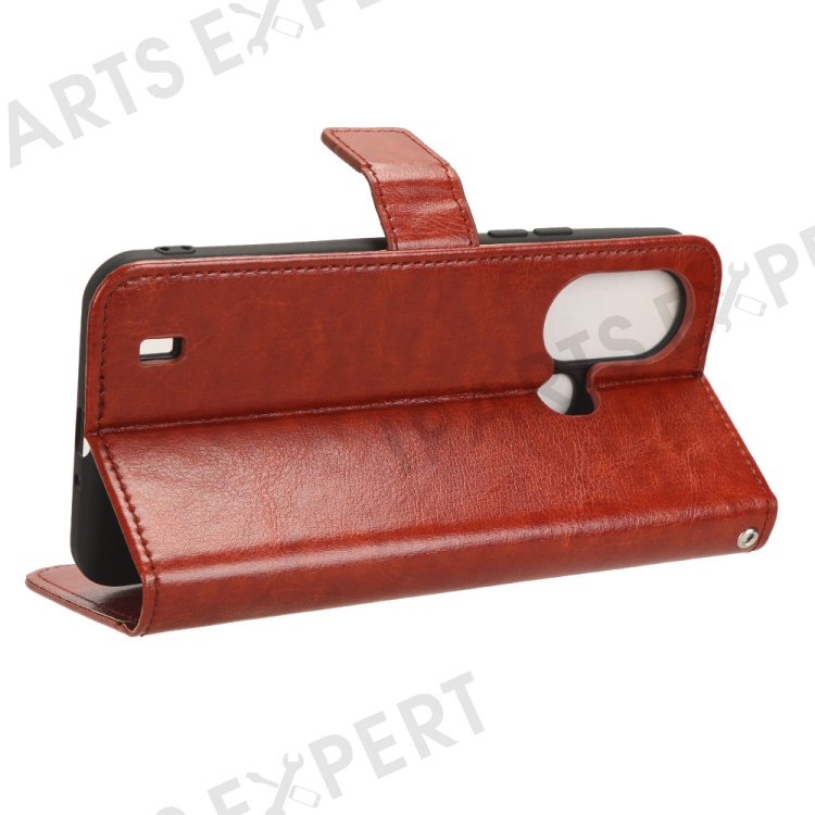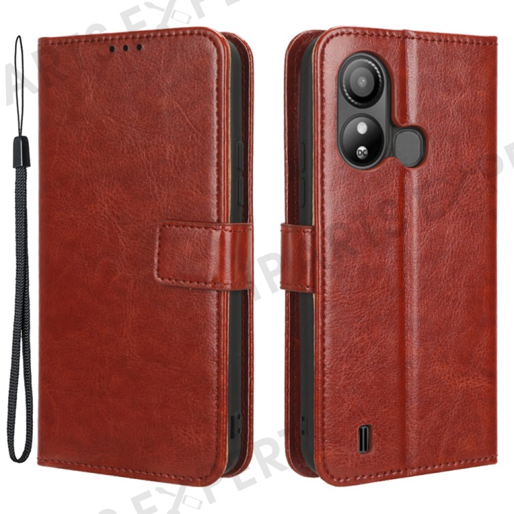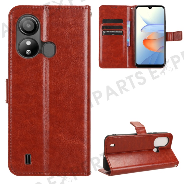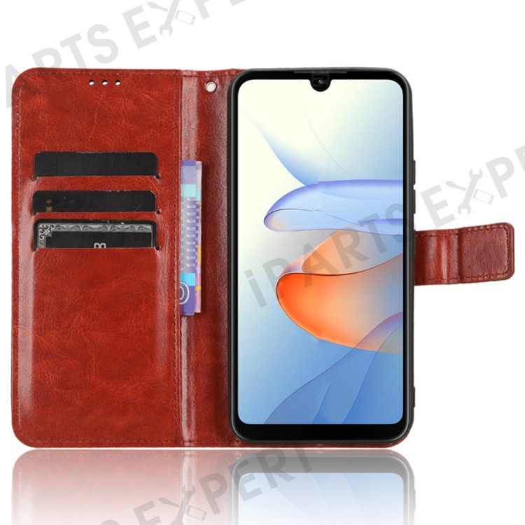 For ZTE Blade L220 Smartphone Cover Anti-Scratch Phone Stand Case Crazy Horse Texture Leather Wallet Shell - Brown