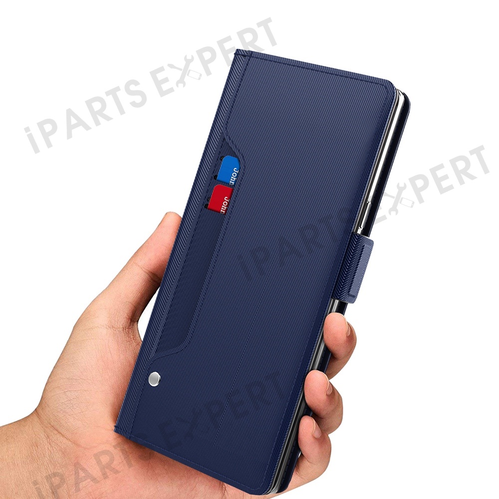 For ZTE Blade V70 Case Stand PU Leather Phone Cover Card Holder Mirror - Blue