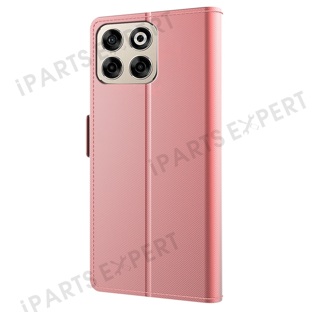 For ZTE Blade V70 Case Stand PU Leather Phone Cover Card Holder Mirror - Rose Gold