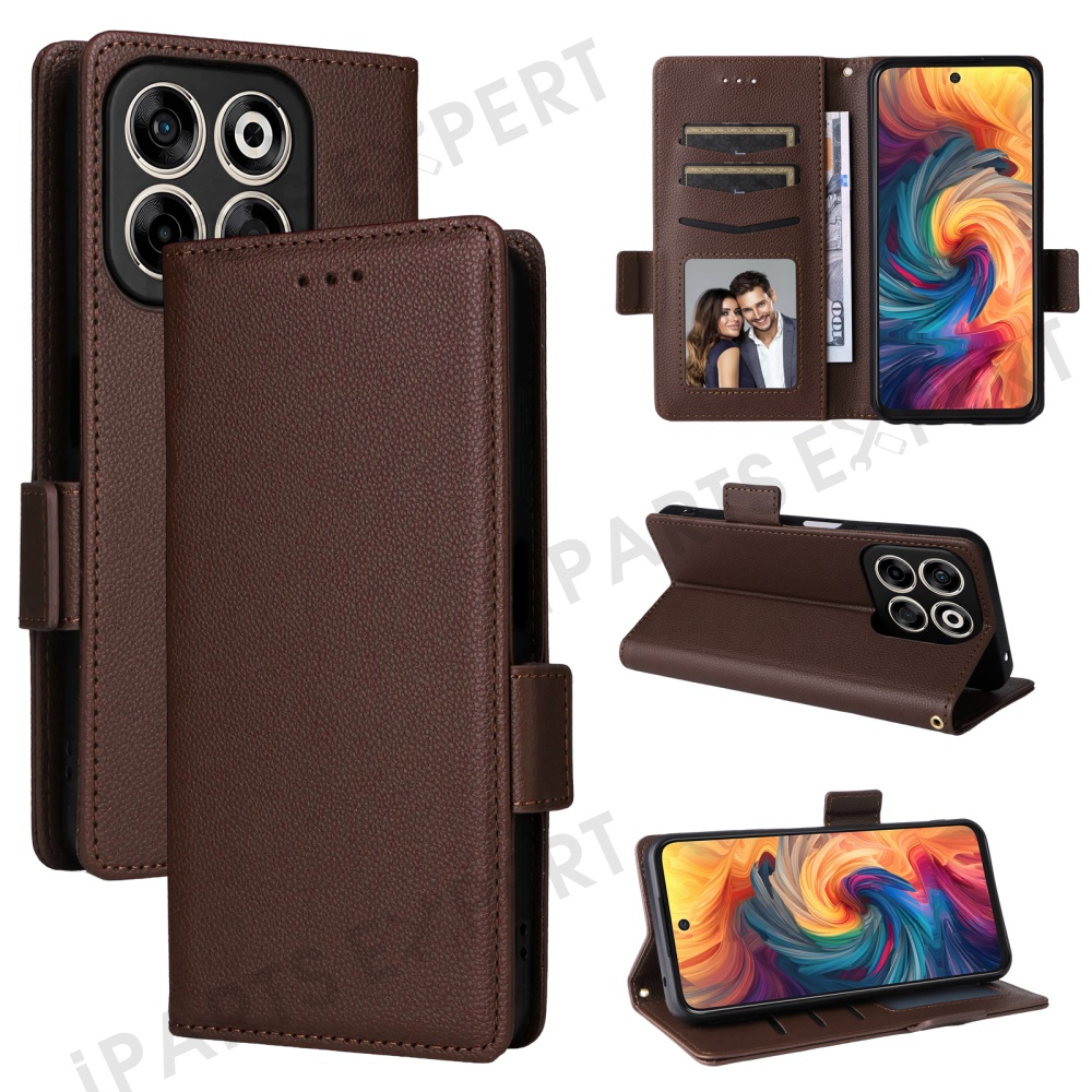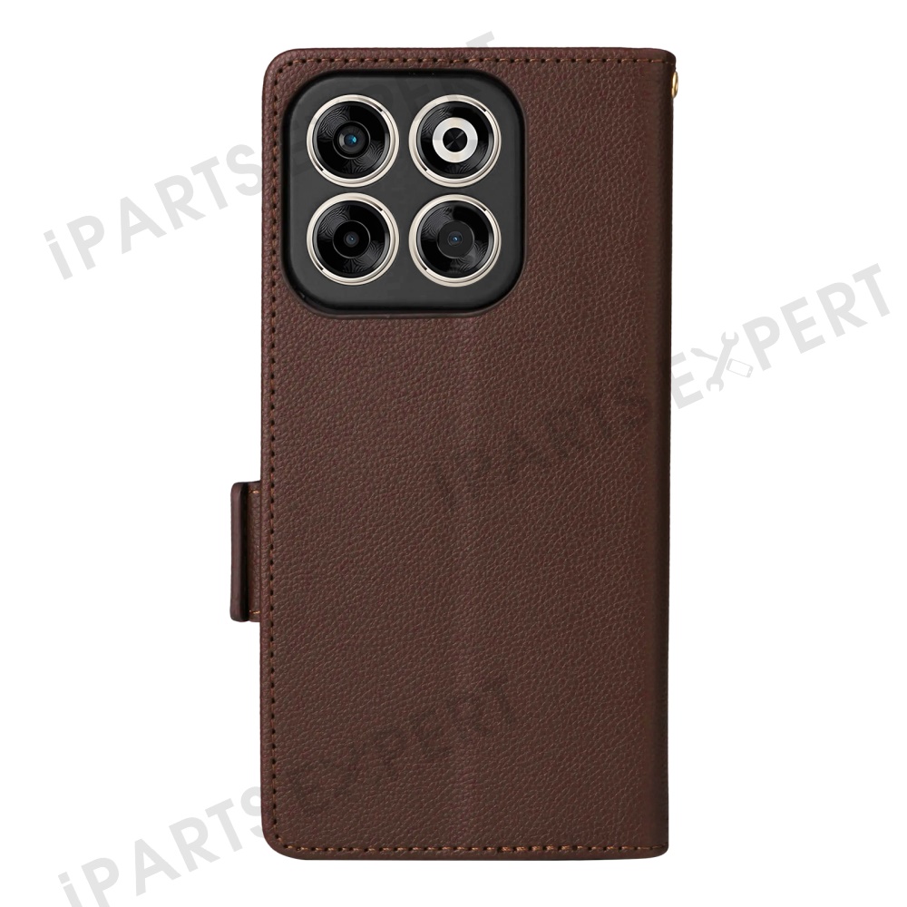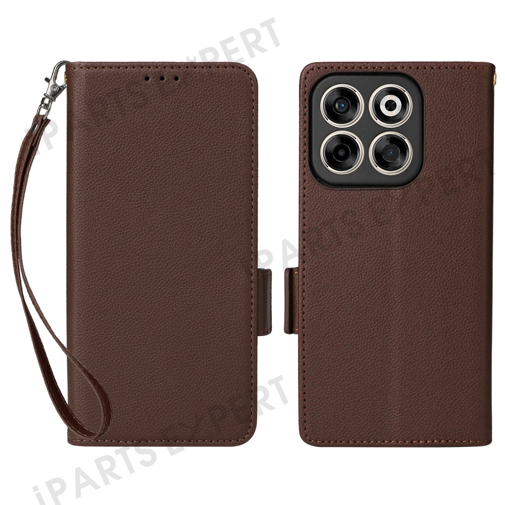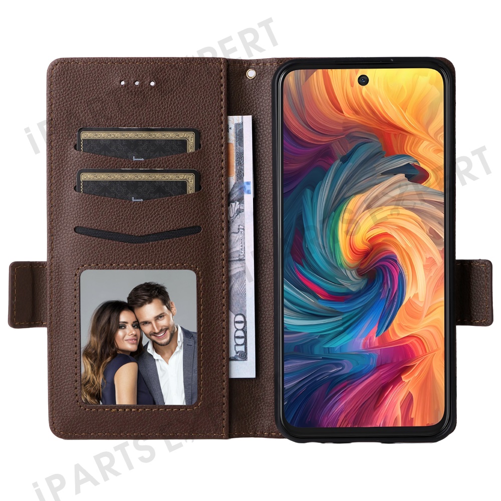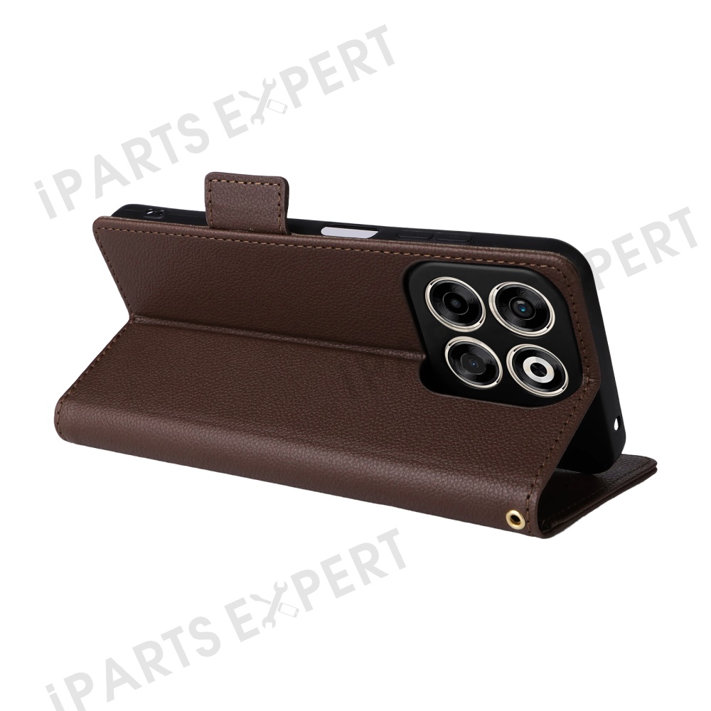 For ZTE Blade V70 / nubia V70 Case with Wrist Strap Litchi Texture PU Leather Wallet Phone Cover - Brown