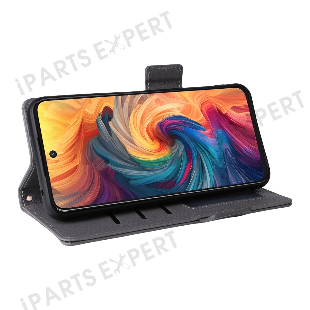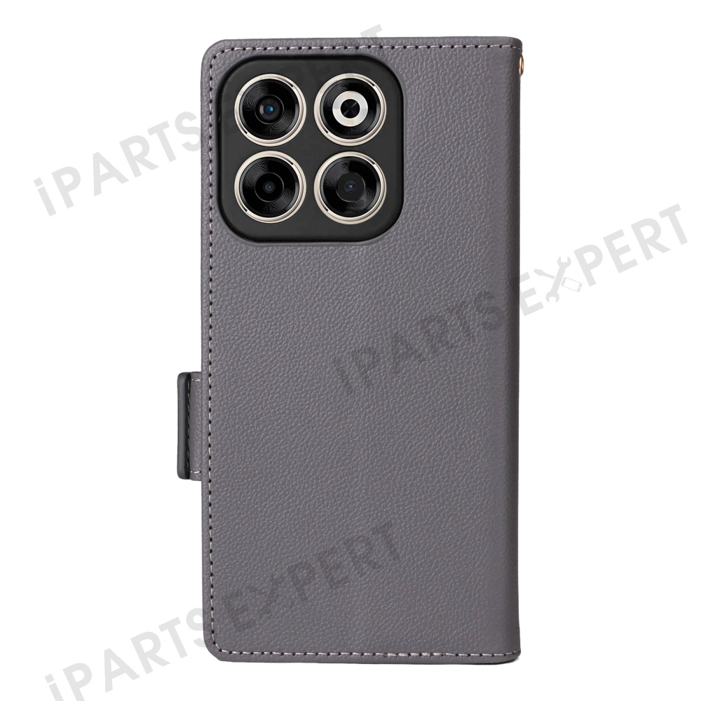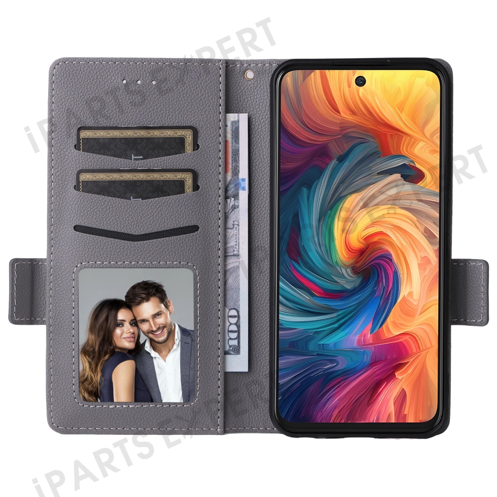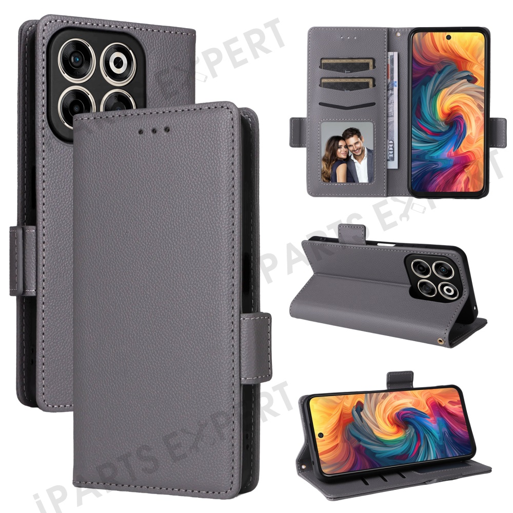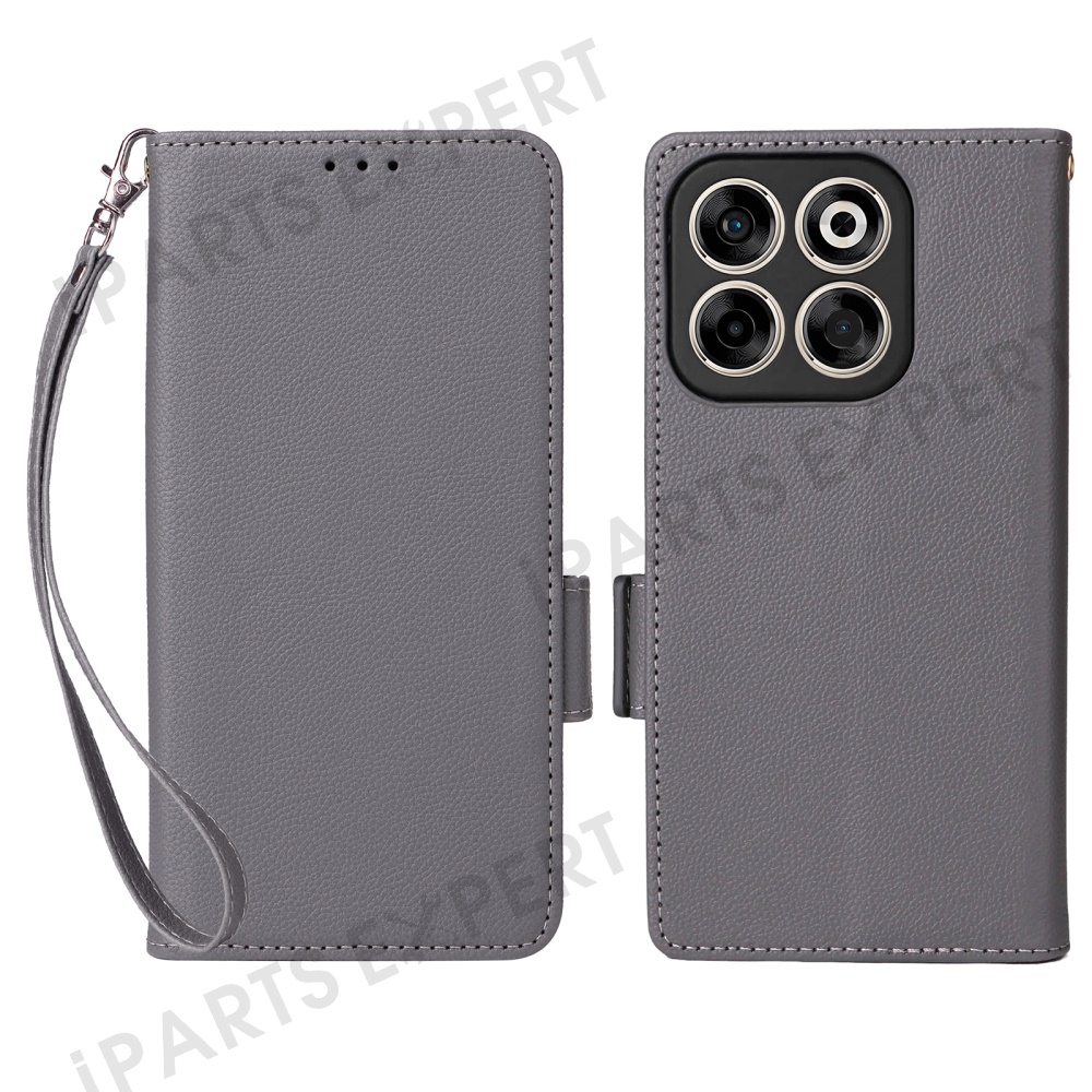 For ZTE Blade V70 / nubia V70 Case with Wrist Strap Litchi Texture PU Leather Wallet Phone Cover - Grey