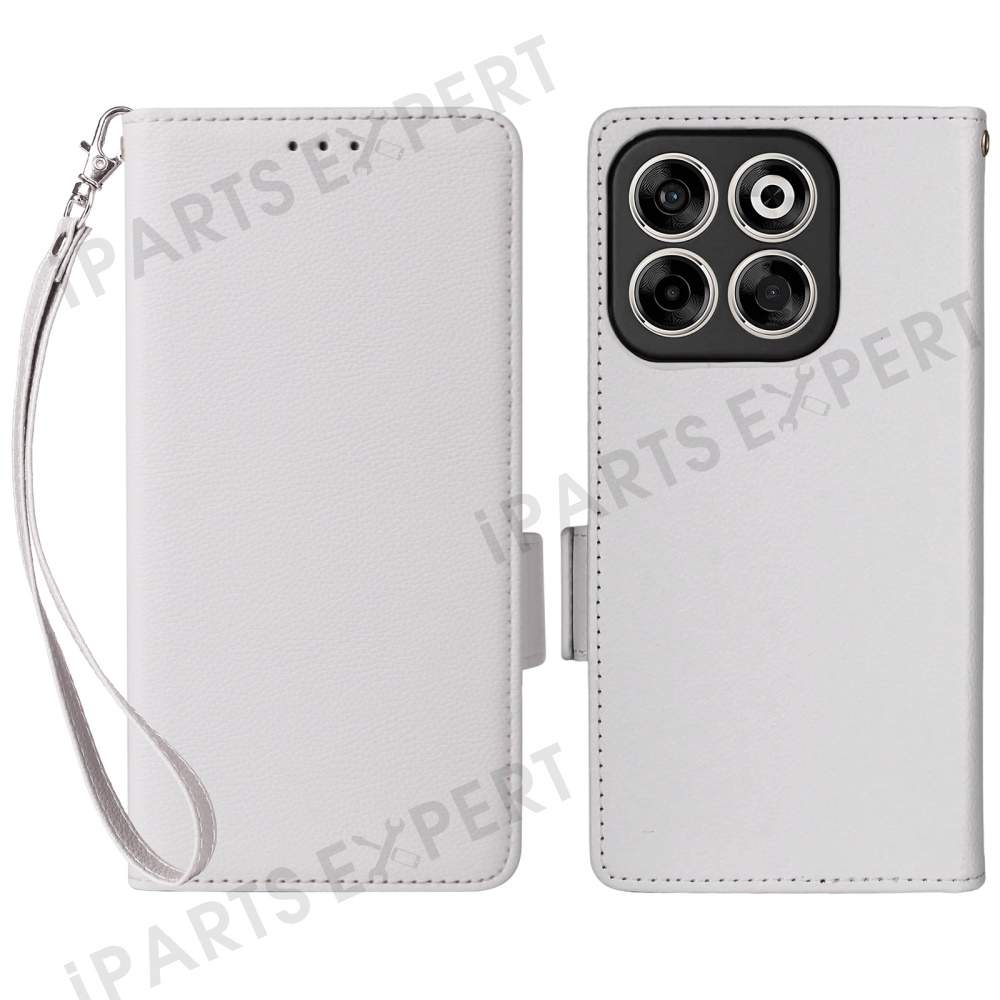 For ZTE Blade V70 / nubia V70 Case with Wrist Strap Litchi Texture PU Leather Wallet Phone Cover - White