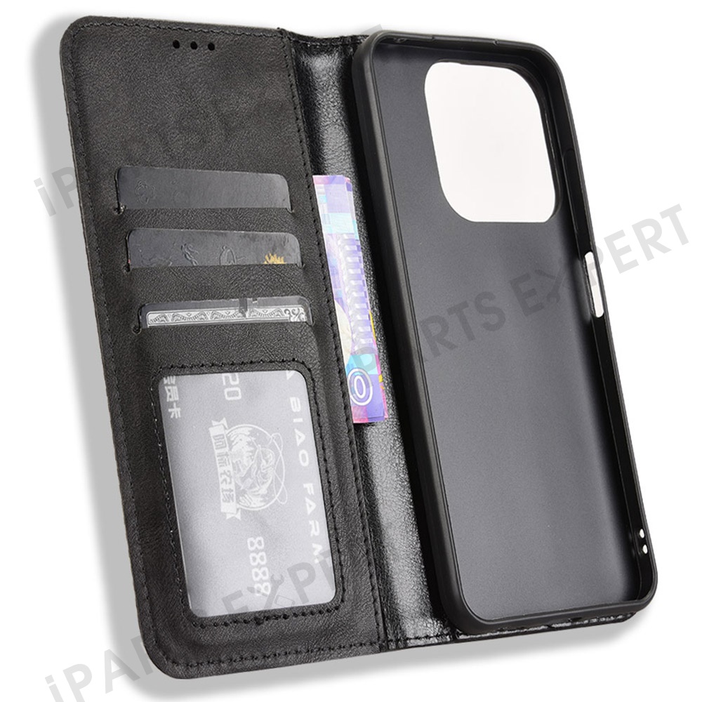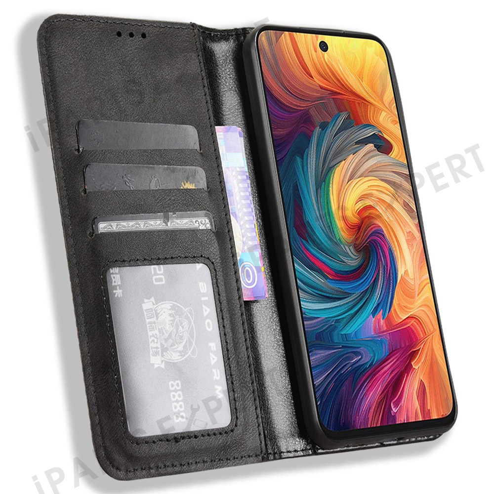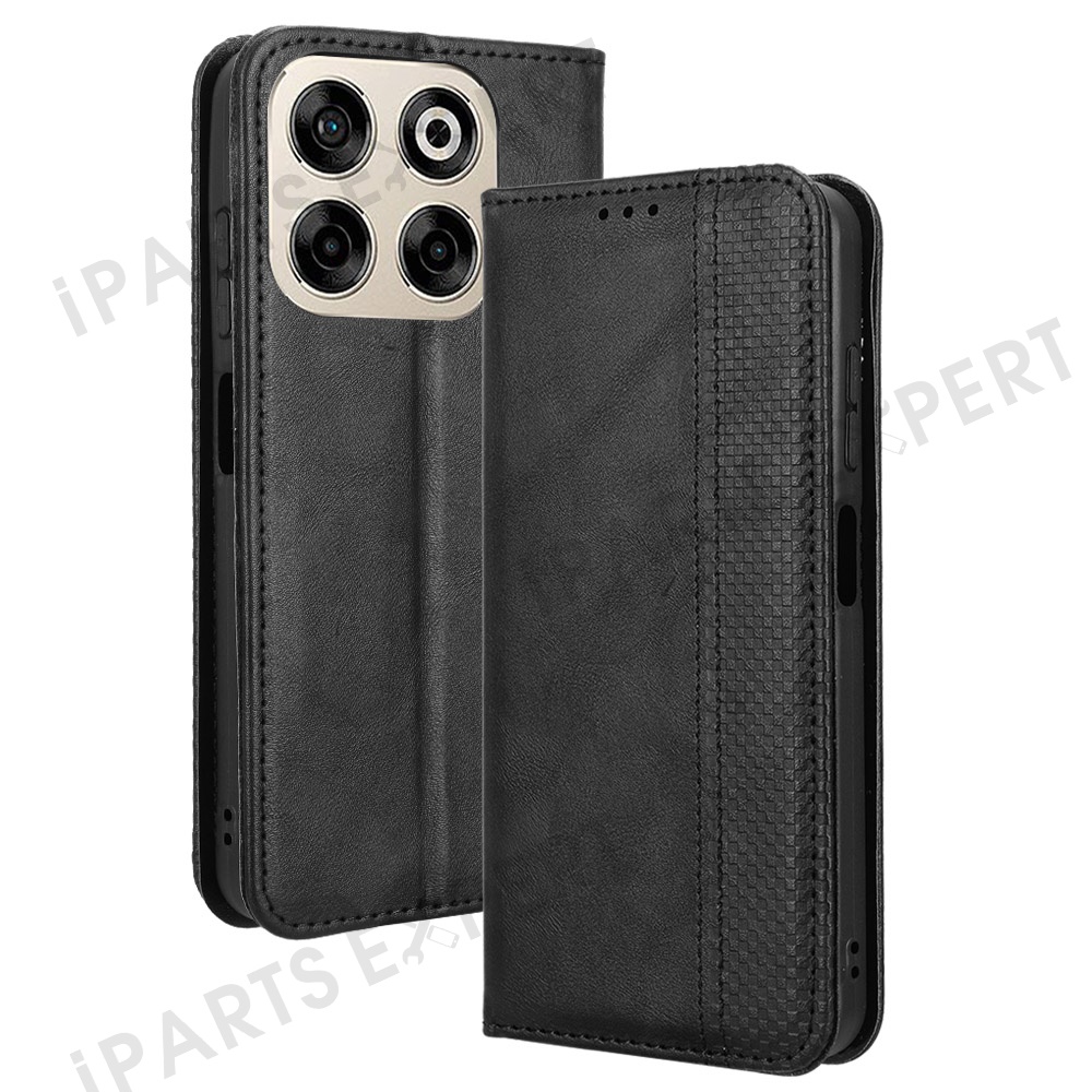 For ZTE Blade V70 / nubia V70 Leather Case Wallet Stand Retro Texture Phone Cover - Black