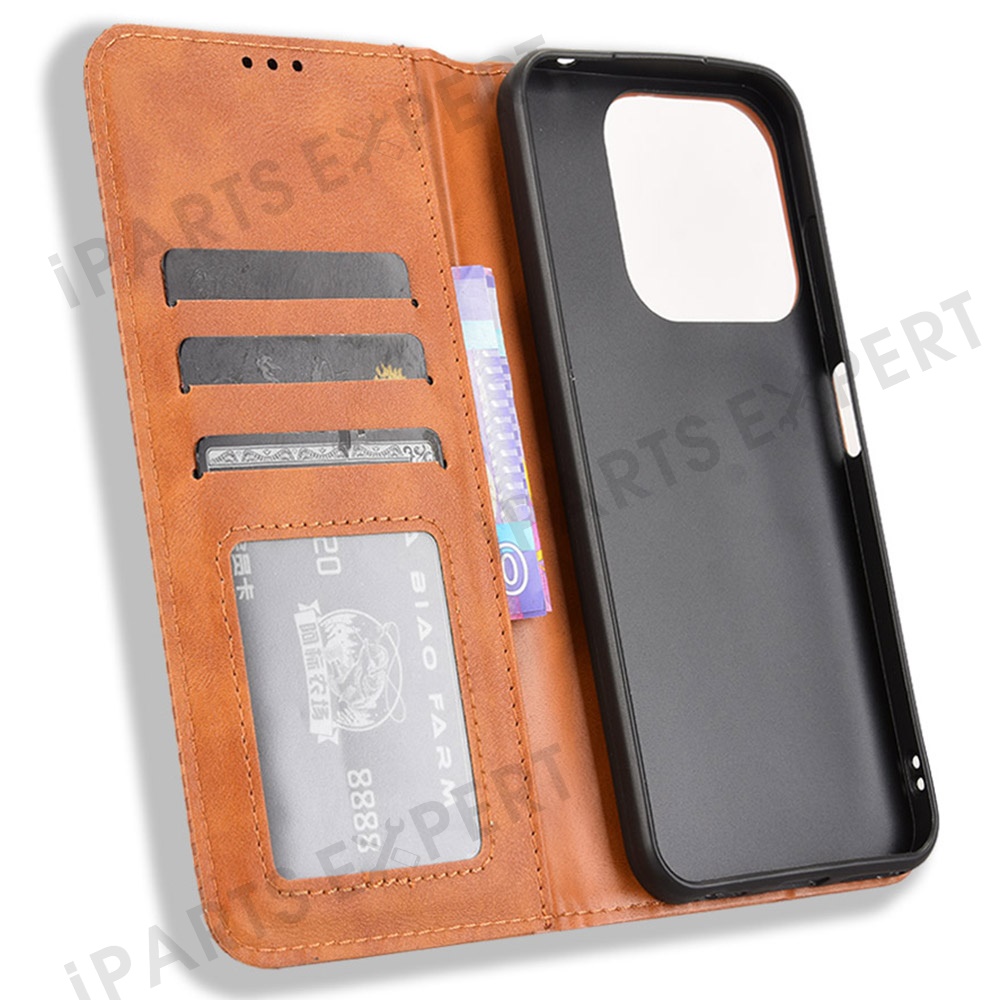 For ZTE Blade V70 / nubia V70 Leather Case Wallet Stand Retro Texture Phone Cover - Brown