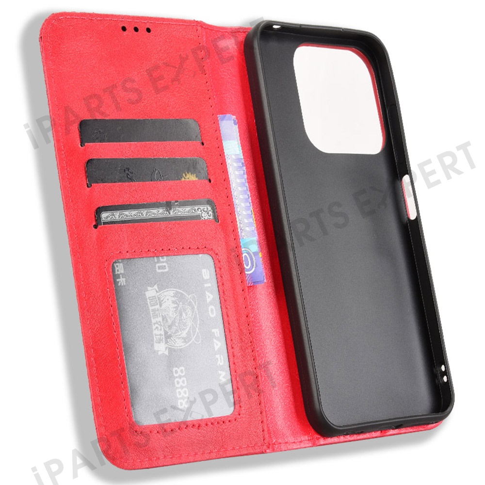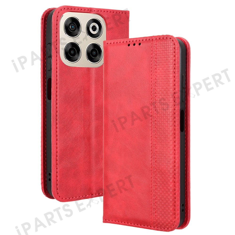 For ZTE Blade V70 / nubia V70 Leather Case Wallet Stand Retro Texture Phone Cover - Red