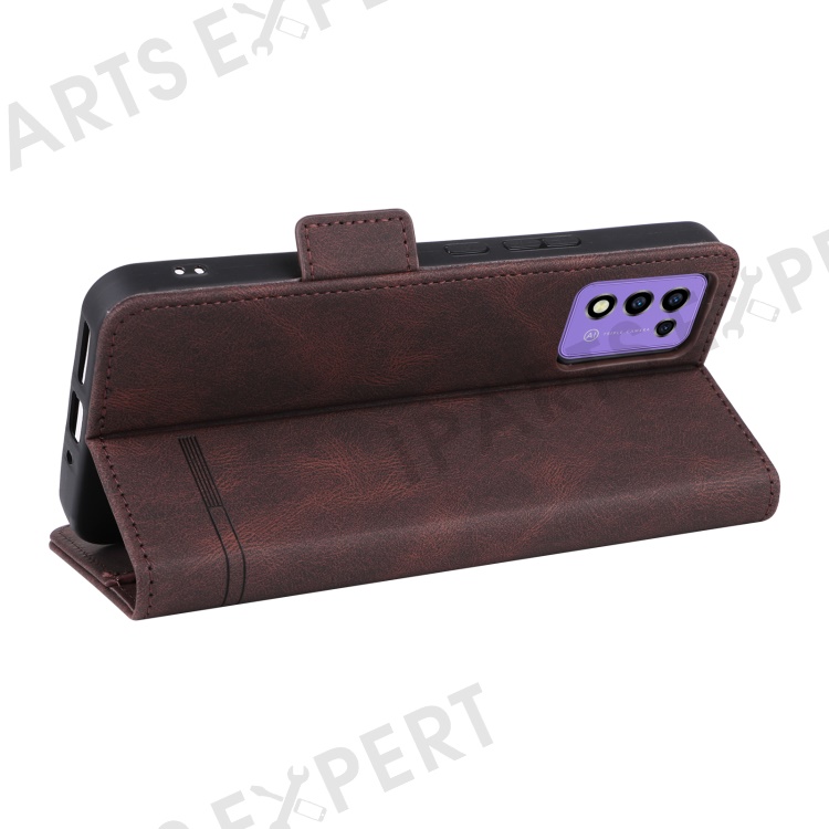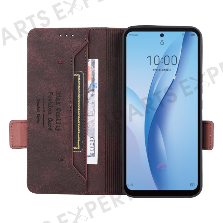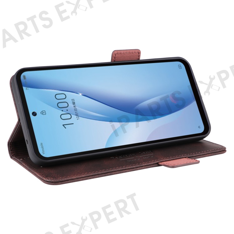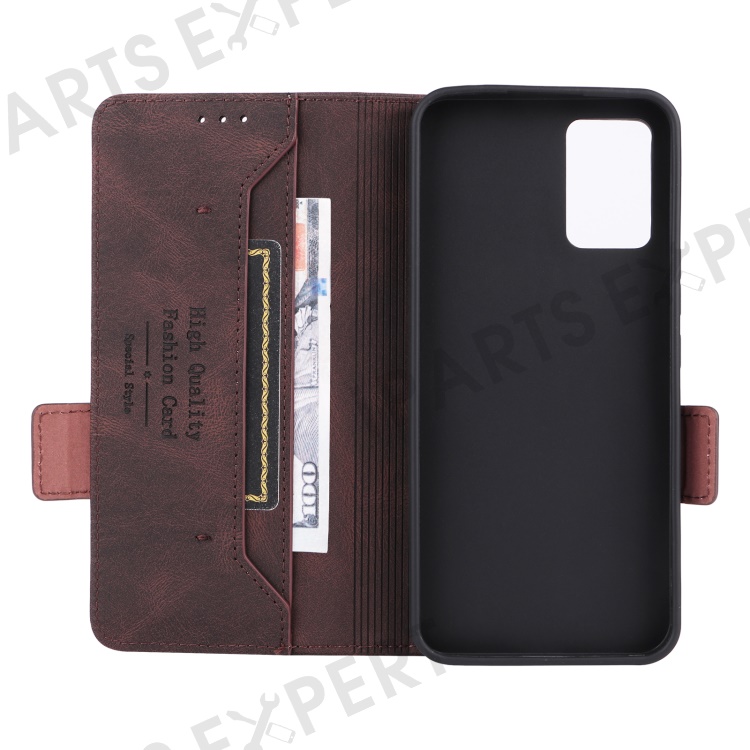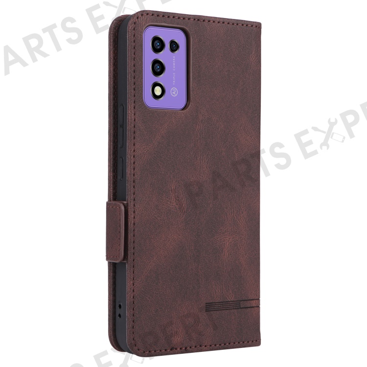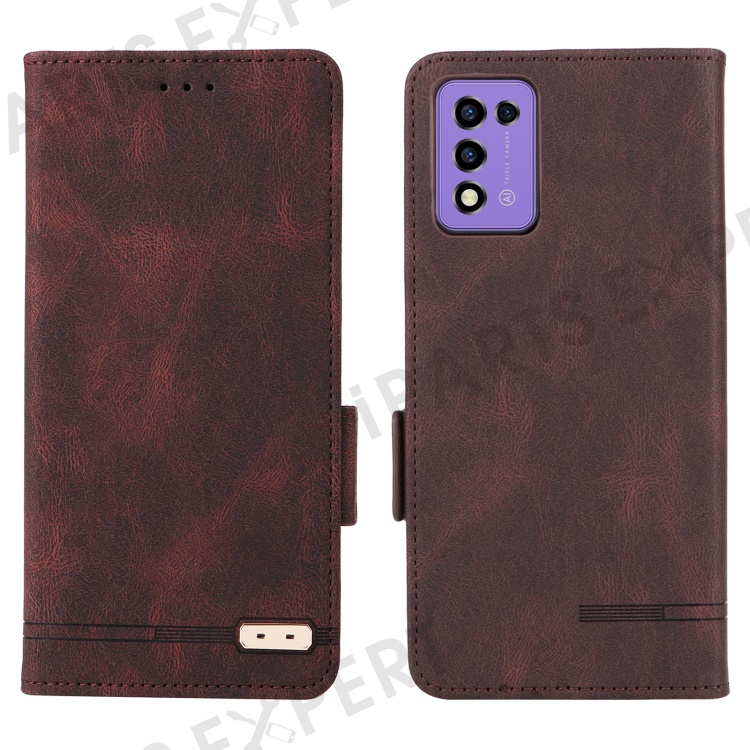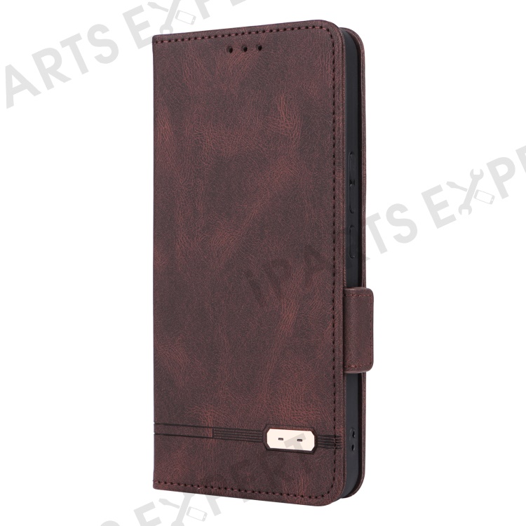 For ZTE Libero 5G III Hardware Decor Dual Magnetic Clasp Anti-fall Phone Cover Wallet Stand Anti-scratch PU Leather Phone Case - Coffee
