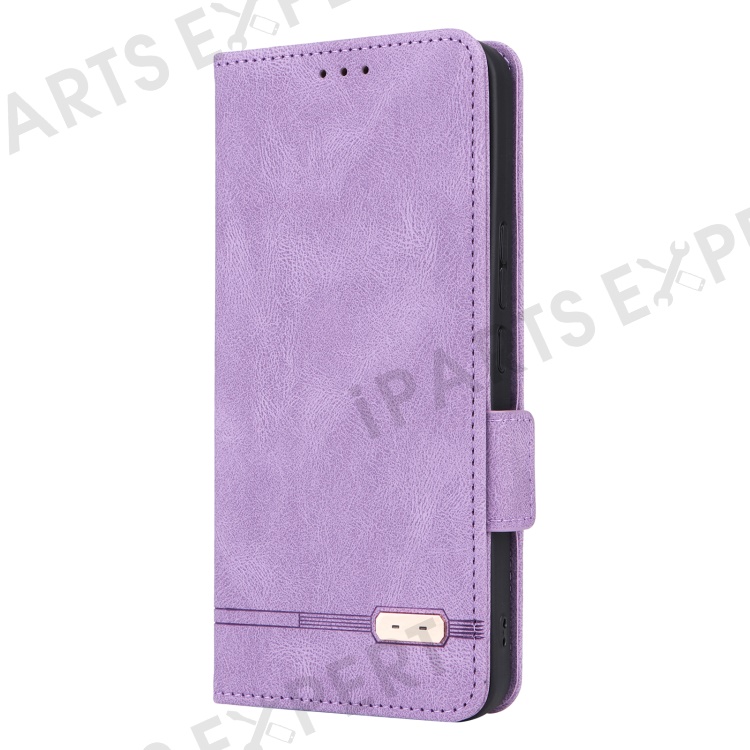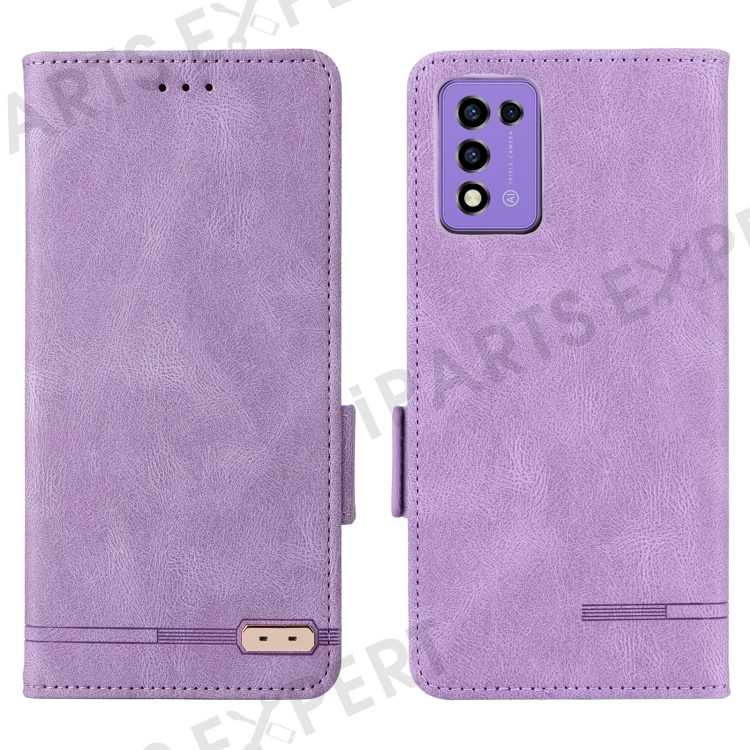 For ZTE Libero 5G III Hardware Decor Dual Magnetic Clasp Anti-fall Phone Cover Wallet Stand Anti-scratch PU Leather Phone Case - Purple