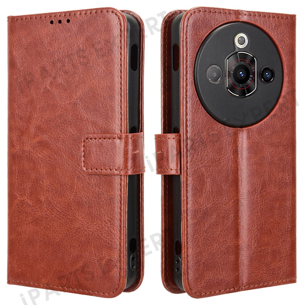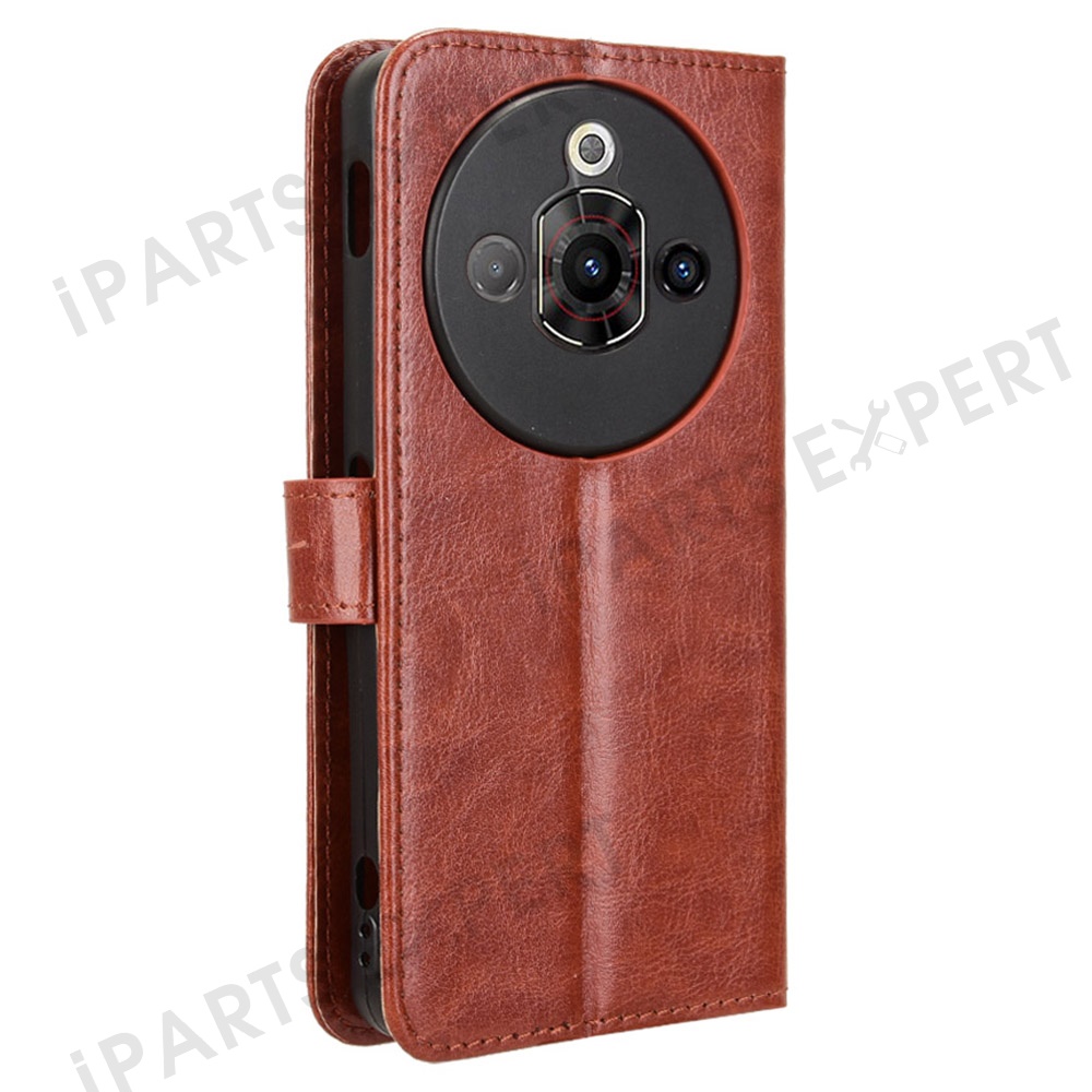 For ZTE nubia Focus Pro Case Crazy Horse Texture PU Leather Phone Wallet Cover - Brown