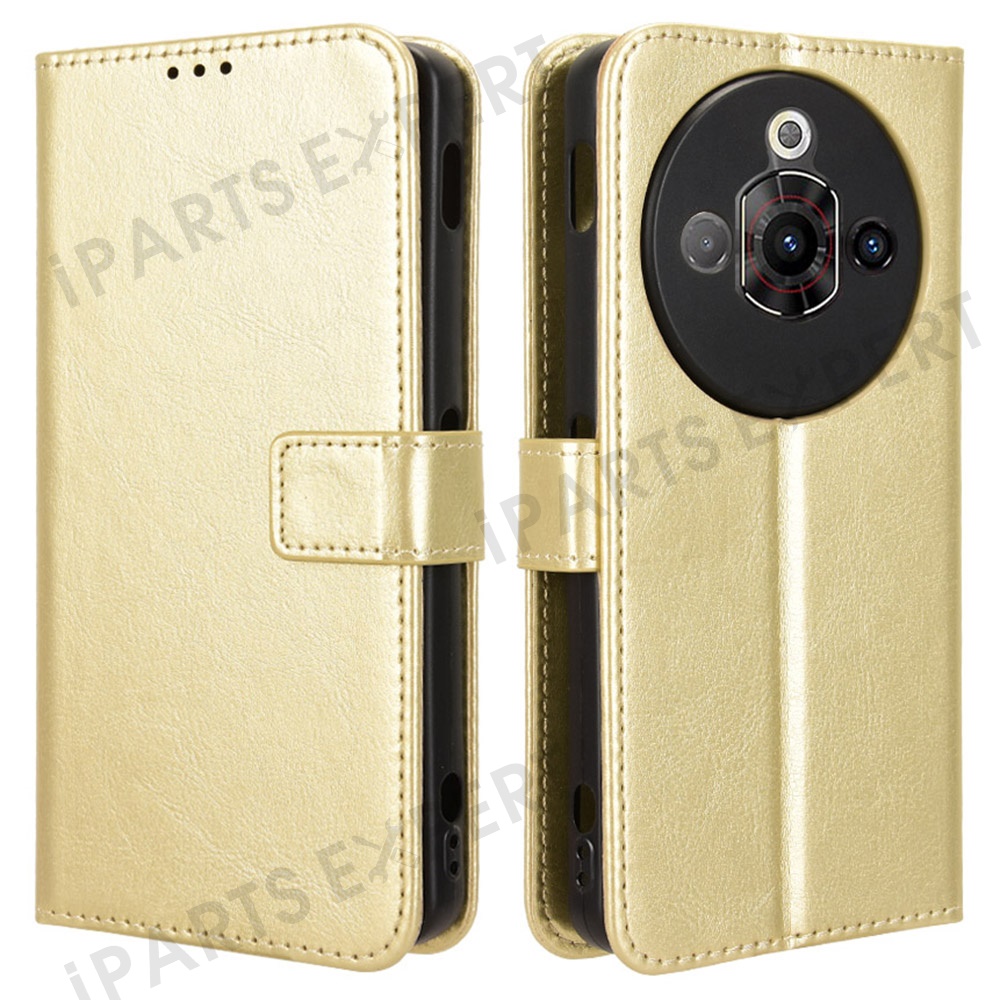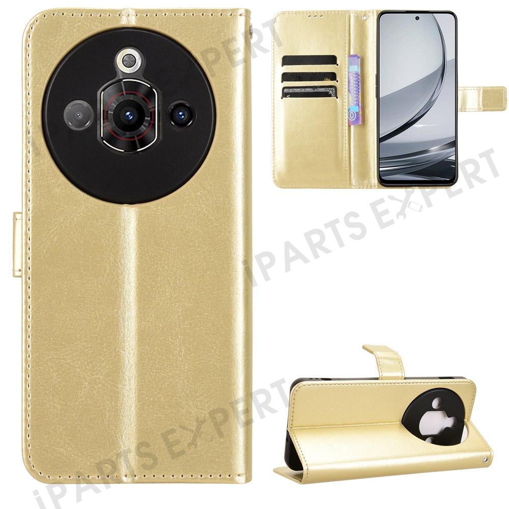 For ZTE nubia Focus Pro Case Crazy Horse Texture PU Leather Phone Wallet Cover - Gold