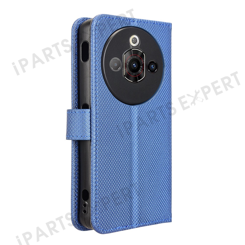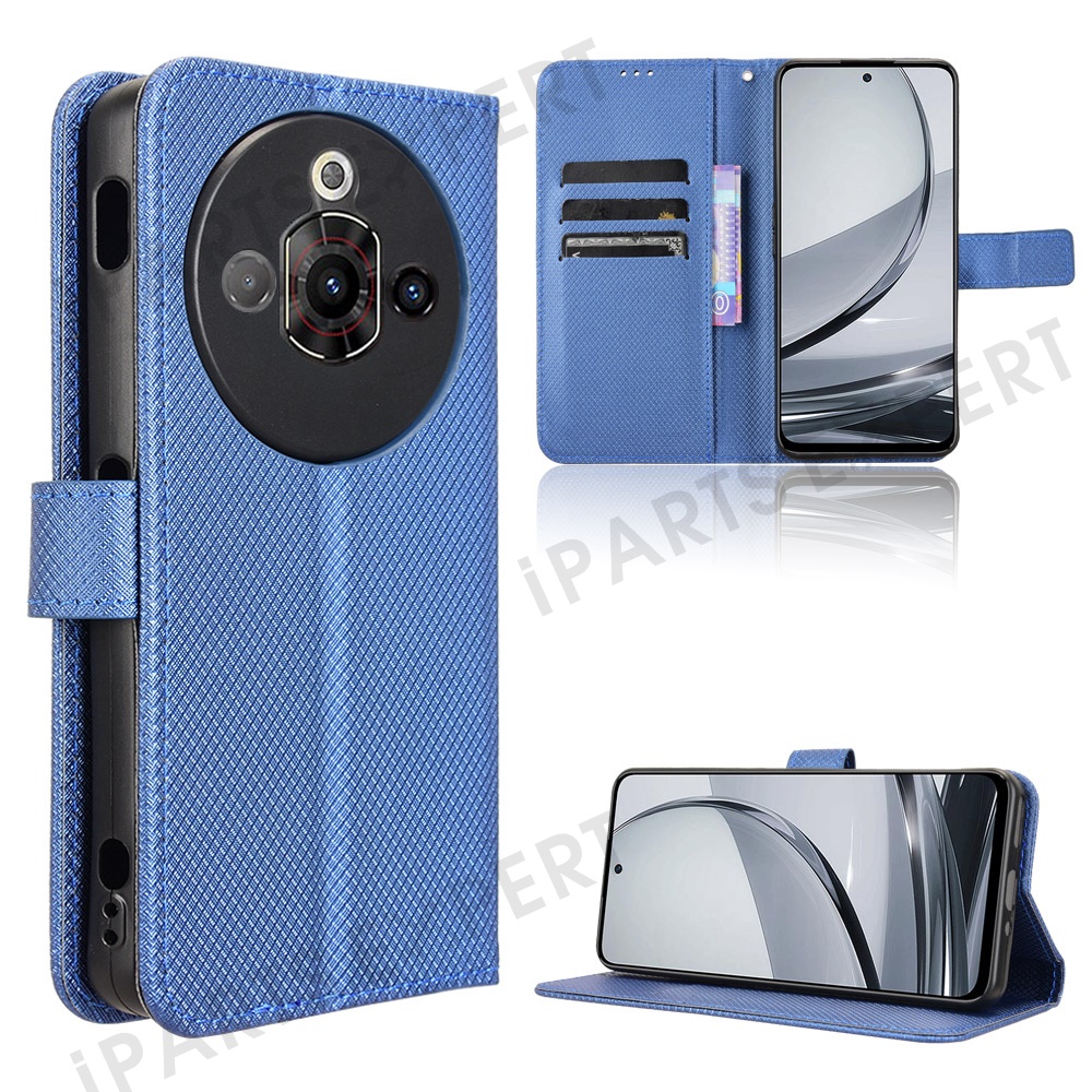For ZTE nubia Focus Pro Case PU Leather Diamond Texture Wallet Phone Cover - Blue