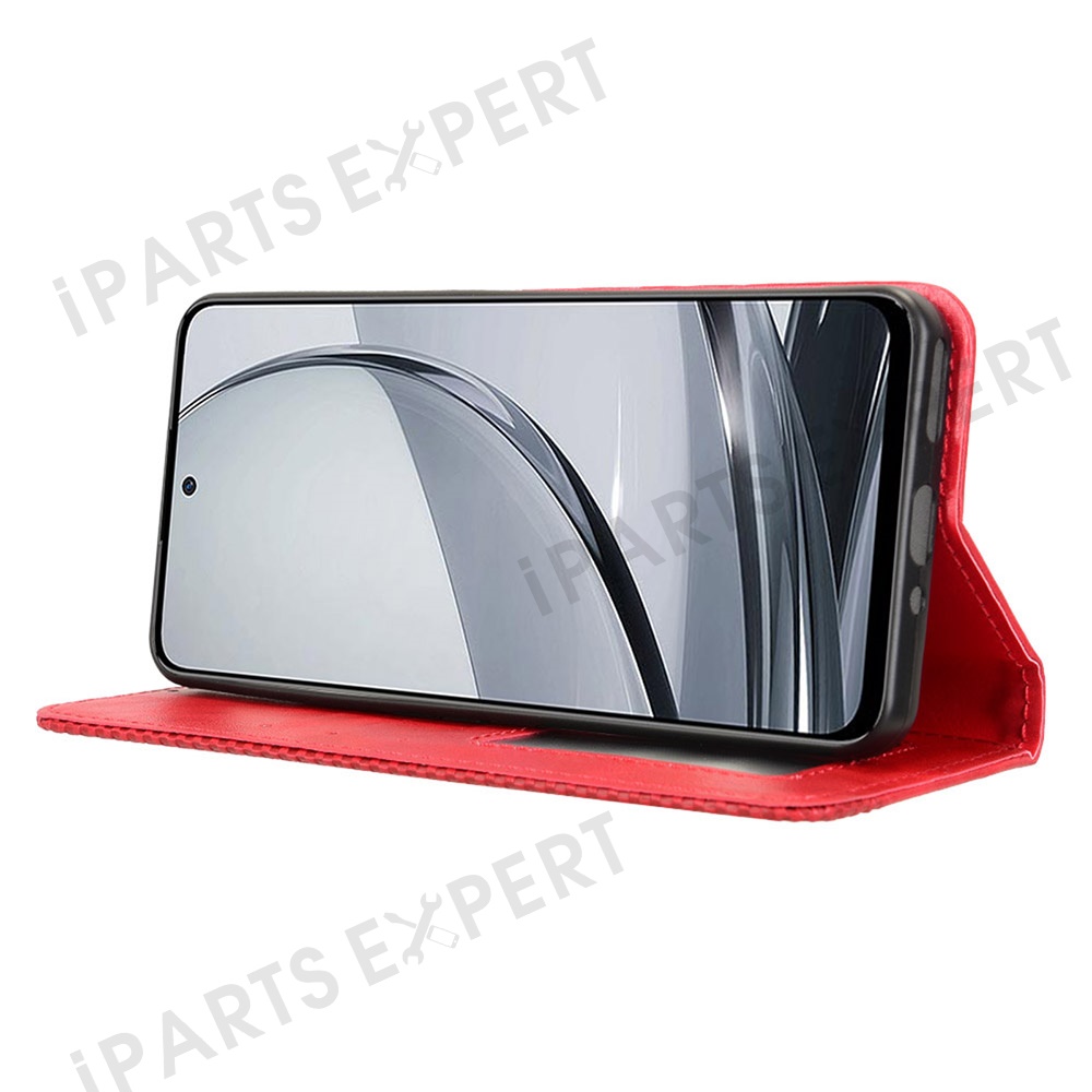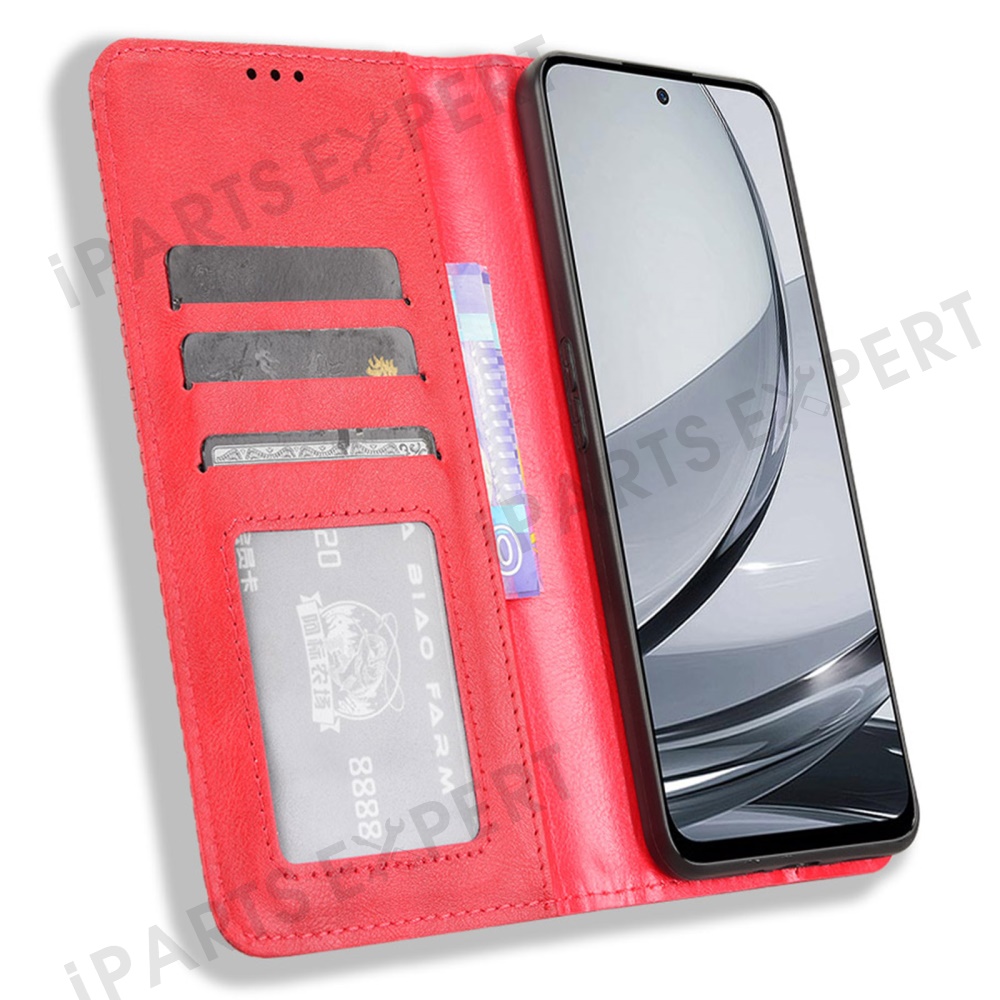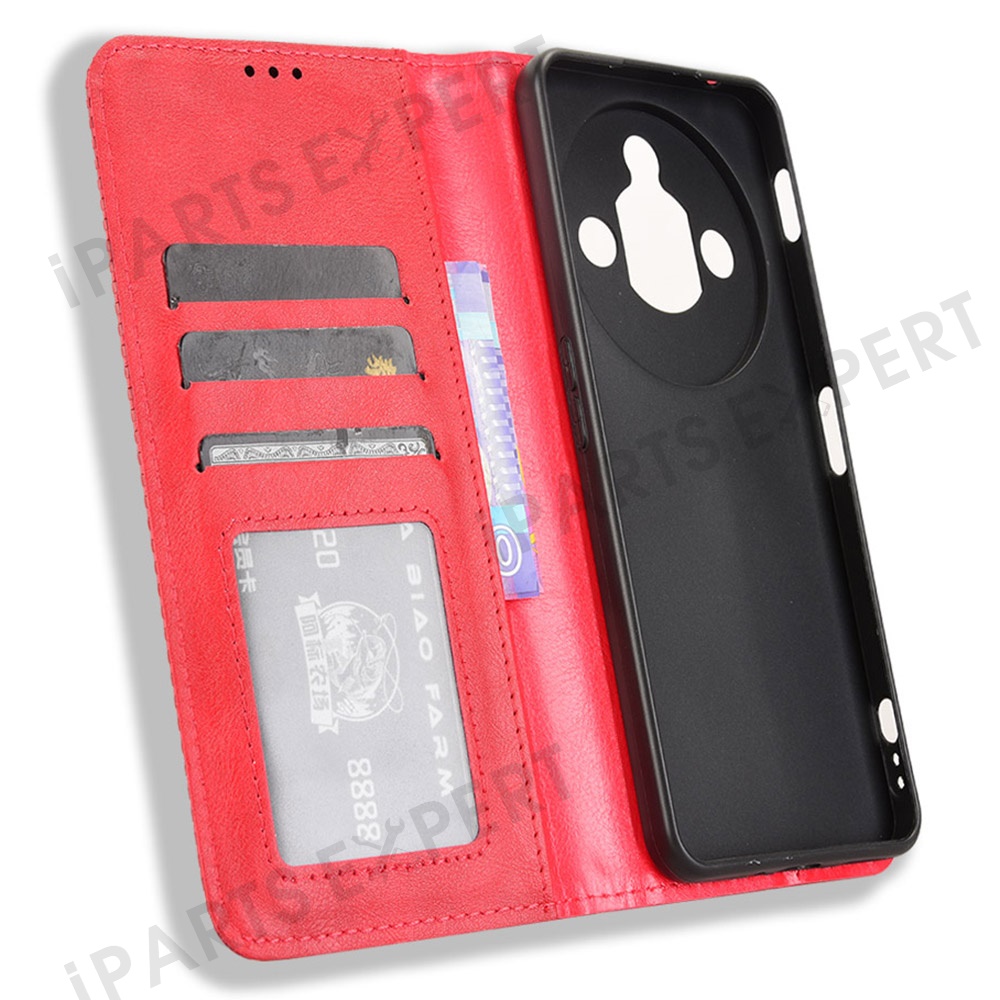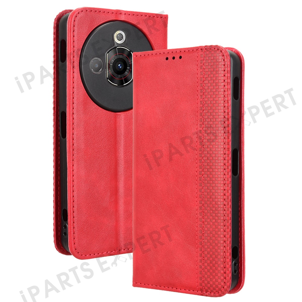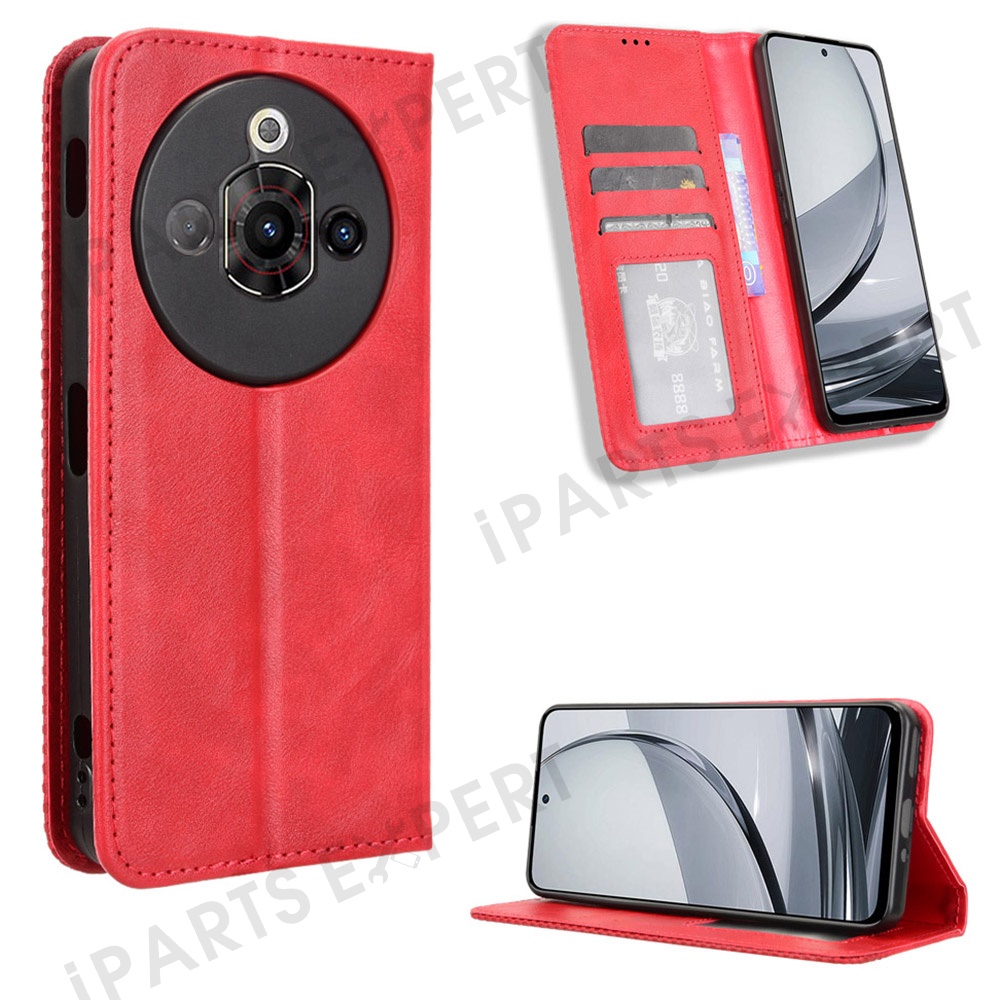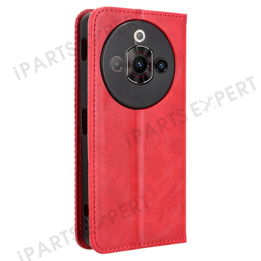 For ZTE nubia Focus Pro Leather Case Wallet Stand Retro Texture Phone Cover - Red