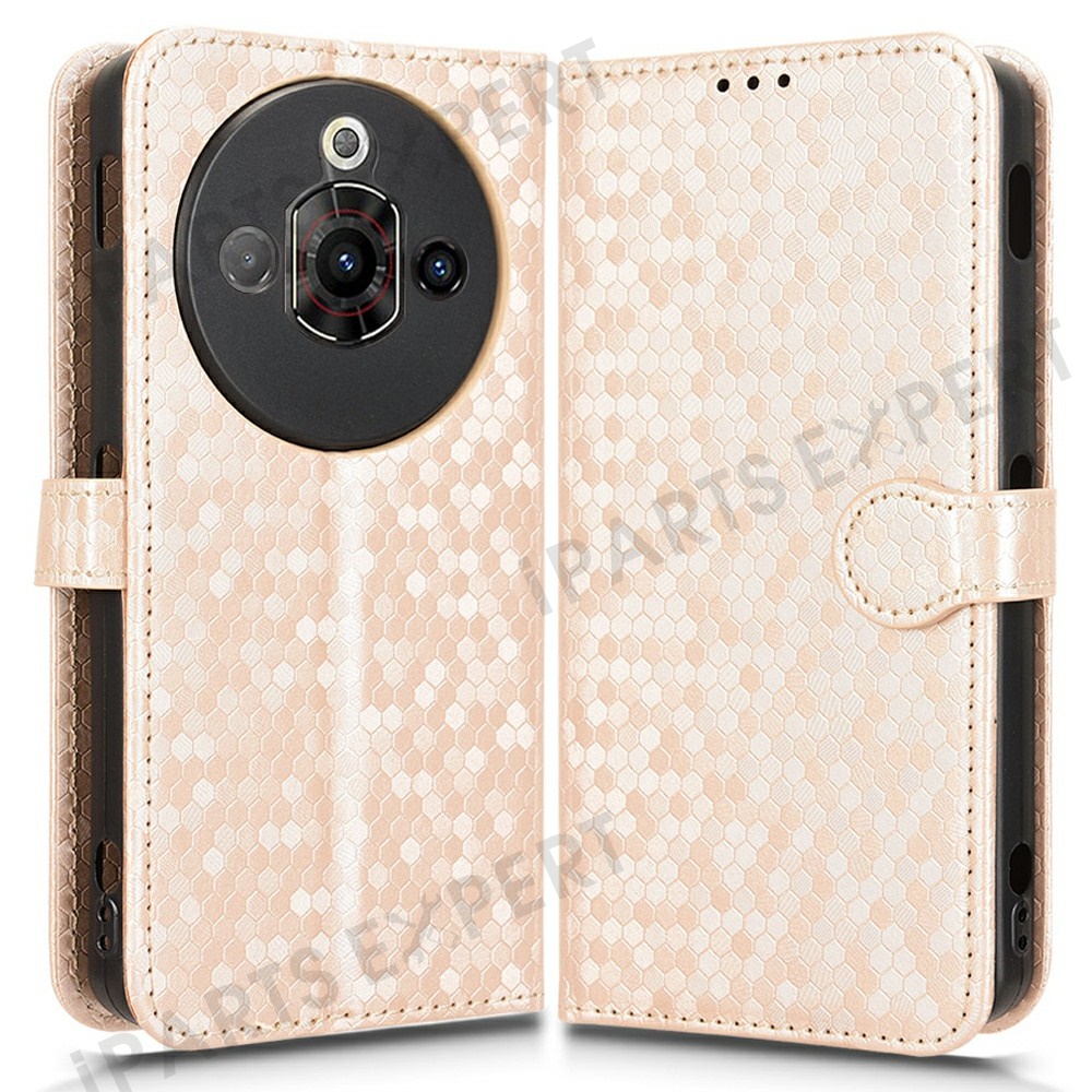 For ZTE nubia Focus Pro Wallet Case Dot Pattern Imprint PU Leather Phone Cover - Rose Gold